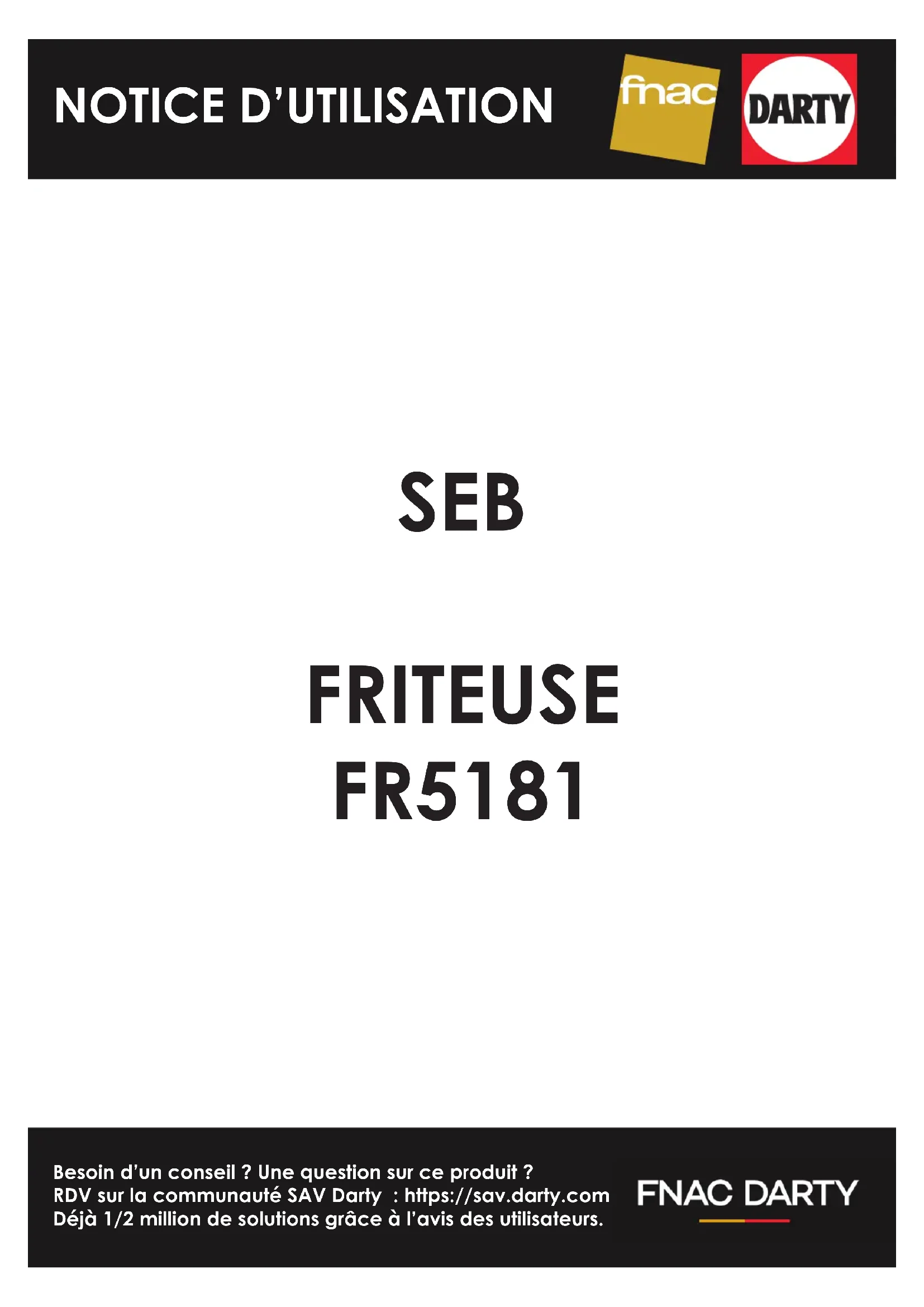 Besoin d’un conseil ? Une question sur ce produit ? RDV sur la communauté SAV Darty : https://sav.darty.com Déjà 1/2 million de solutions grâce à l’avis des utilisateurs. SEB FRITEUSE FR5181 NOTICE D’UTILISATIONwww.groupeseb.com FILTRA PRO2 RESET