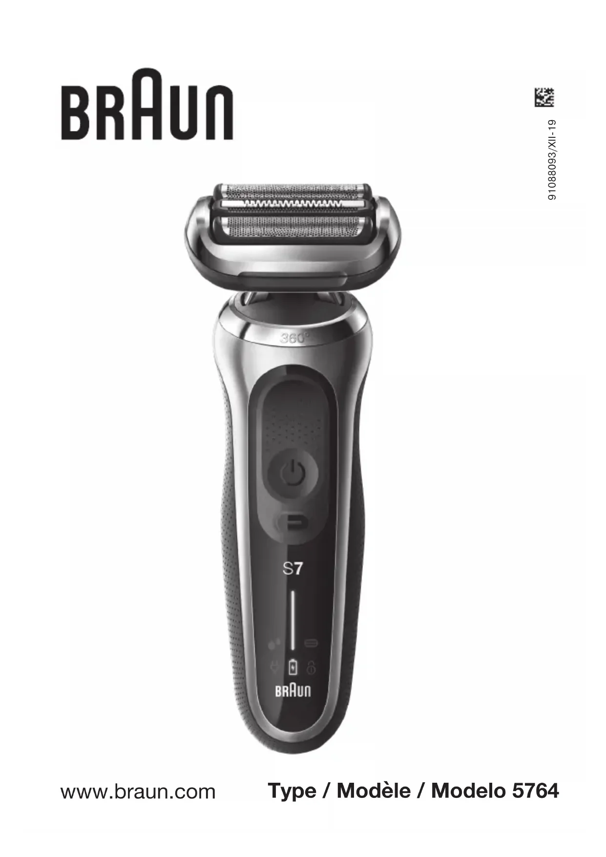 2 year limited warranty (foil and cutter block excluded) In the event a Braun Shaver fails to function within 2 years from date of purchase, because of defects in material or workmanship, and the consumer returns the unit to an authorized service center, Braun Canada, will, at its option, either repair or replace the unit without additional charge to the consumer. This guarantee does not cover any product, which has been damaged by dropping, tampering, wrong current, servicing performed or attempted by unauthorized service agencies, misuse or abuse, kinks in the shaver foil as well as the normal wear of the shearing parts. Exclusion of Warranties: The foregoing warranty is the sole warranty offered by Braun Canada. Braun Canada hereby disclaims any implied warranty or merchantability or fitness for any particular purpose. In no event will Braun Canada be responsible for consequential damages resulting from the use of this product. 91088093_007-S7_NA.indd 2391088093_007-S7_NA.indd 23 18.12.19 15:3218.12.19 15:3224 Comment obtenir des services au Canada Si ce produit devait avoir besoin d’un service après-vente, composez le 1-800-387-6657 et on vous référera au centre de services autorisé Braun le plus près de chez vous ou visiter le www.service.braun.com. Pour obtenir des services : A. Apportez le produit au centre de services Braun autorisé de votre choix, ou; B. Expédiez le produit au centre de services Braun autorisé de votre choix. Emballez le produit correctement. Envoyez le produit port payé et assuré (recommandé). Inclure une copie de votre preuve d’achat afin de vérifier la couverture de la garantie, s’il y a lieu. Pour obtenir des pièces originales Braun et des accessoires : Communiquez avec un centre de services autorisé Braun. Pour connaître le centre de services autorisé Braun le plus près de chez vous, veuillez composer le 1-800-387-6657 ou visiter le www.service.braun.com. Pour joindre un représentant du service à la clientèle Braun : Veuillez composer le 1-800-387-6657. 91088093_007-S7_NA.indd 2491088093_007-S7_NA.indd 24 18.12.19 15:3218.12.19 15:3225 Garantie de remboursement de 60 jours sur les produits de soins personnels pour hommes Rasoirs Braun Tondeuses à barbe Braun À notre avis, vous serez satisfait de la performance de votre nouveau rasoir ou nouvelle tondeuse à barbe de Braun. Nous suggérons l’utilisation régulière du produit durant 2 à 3 semaines. Si vous n’êtes pas satisfait de ce produit, veuillez composer le 1-800-211-6661 pour obtenir des renseignements sur la façon de le retourner. Retournez l’appareil et toutes ses pièces dans les 60 jours suivant l’achat. Conservez le reçu de caisse, le produit, toutes les pièces ainsi que la boîte. Ne vous présentez pas chez le détaillant pour que la garantie soit honorée. Veuillez noter qu’aucun remboursement ne sera effectué si le produit a été endommagé par accident, par négligence ou par un usage abusif. Votre produit doit être expédié dans son emballage original, accompagné du reçu de caisse indiquant la date d’achat. Veuillez ajouter les renseignements suivants dans votre envoi : Nom Adresse Ville État/Province/Code postal Numéro de téléphone Veuillez prévoir de 6 à 8 semaines pour le traitement de votre demande. 91088093_007-S7_NA.indd 2591088093_007-S7_NA.indd 25 18.12.19 15:3218.12.19 15:3226
