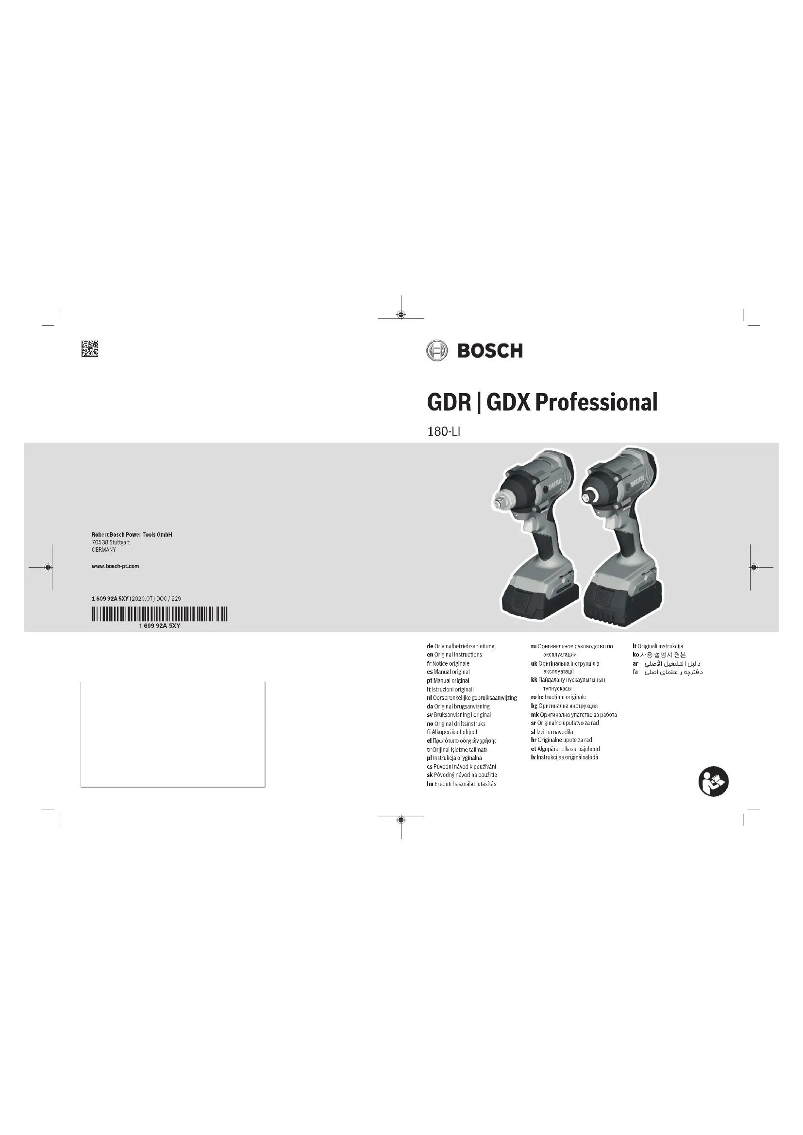 Les accessoires décrits ou illustrés ne sont pas tous compris dans la fourniture. Vous trouverez les accessoires complets dans notre gamme d’accessoires. Caractéristiques techniques Visseuse à chocs sans fil GDR 180-LI GDX 180-LI Référence 3 601 JG5 1.. 3 601 JG5 2.. Tension nominale V 18 18 Régime à vide