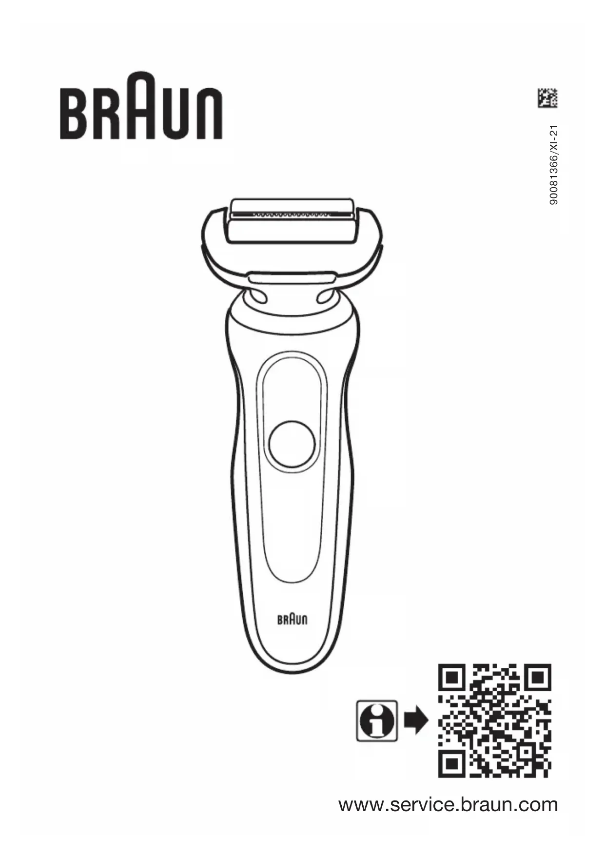 Ne pas utiliser si l’appareil ou un accessoire est endommagé. Ne pas ouvrir l’appareil ! Les batteries rechargeables intégrées doivent impérati- vement être remplacées par un centre de service agréé Braun. Cet appareil peut être utilisé par les enfants à partir de 8 ans et les personnes avec une réduction des capacités phy- siques, sensorielles ou men- tales, ou sans expérience et connaissances, s’ils ont béné- ficié d’une surveillance ou d’instructions concernant l’utilisation de l’appareil en 90081366_UI_S5_Shaver+Attachments_EURO.indd 2190081366_UI_S5_Shaver+Attachments_EURO.indd 21 08.11.21 08:3308.11.21 08:3322 toute sécurité et comprennent les dangers encourus. Si l’appareil est fourni avec un accessoire tondeuse à cheveux, il peut être utilisé par des enfants âgés de 3 ans et plus sous surveillance. Les enfants ne doivent pas jouer avec cet appareil. Les opérations de nettoyage et de maintenance ne doivent pas être effectuées par des enfants à moins qu’ils ne soient sous surveillance. Mise en garde La température ambiante recommandée pour la charge est comprise entre 5 à 35 °C. Pour le rangement et le rasage, entre 15 à 35 °C. Ne pas soumettre l’appareil à une température supérieure à 50 °C pendant une durée prolongée. La brosse (03-BR) ne doit pas être utilisée sur une peau endommagée ou irritée ou sur des lésions. En cas d’irritation, cesser son utilisation. Éviter tout contact direct avec les yeux et la ligne de contour des cheveux. La tondeuse pour le corps (06-BDT) doit être utilisée uniquement avec le peigne sur les zones délicates. Utiliser l’appareil uniquement dans le cadre de l’usage prévu. Pour des raisons d’hygiène, ne pas partager l’appareil avec d’autres personnes. Comment démarrer ? Pour la première activation, branchez le rasoir à une prise électrique. Débranchez ensuite pour l’utilisation. Comment se raser ? Positionnez la tête de rasoir à 90° sur votre peau pour que tous les éléments de rasage soient entièrement en contact avec la peau. Rasez-vous dans le sens opposé à la pousse de votre barbe avec des mouvements francs d’avant en arrière. Comment nettoyer ? La cassette de rasage doit être nettoyée à l’eau courante chaude après chaque utilisation avec du gel ou de la mousse à raser ! La brosse (03-BR) doit être nettoyée à l’eau courante tiède après chaque utilisation ! Allumer le rasoir et rincer jusqu’à ce que tous les résidus soient éliminés. Ensuite, le rasoir et la cassette de rasage peuvent être nettoyés ensemble dans la station de nettoyage. Ce produit contient des piles et / ou des déchets électriques recyclables. Pour la protection de l’environnement, ne pas jeter avec les ordures ménagères, mais les porter dans les points de recyclage de déchets électriques disponibles dans votre pays. Sujet à des modifications sans préavis. Description 1 Cassette de rasage 53B 2 Bouton marche/arrêt 3 Affichage - Indicateur de changement de la grille - Indicateur de verrou du rasoir - Indicateur de station de nettoyage - Indicateur de faible charge / utilisation sans fil - LED d’état / Indicateur de batterie 4 Prise d’alimentation 5 Bloc d’alimentation 6 Etui 7 Capuchon de protection 8 Tondeuse de précision 02-PT 9 Tondeuse à barbe 05-BT avec sabots (1/2/3/5/7 mm) 10 Tondeuse pour le corps 06-BDT avec sabots (1 mm = sensible / 3 mm) 90081366_UI_S5_Shaver+Attachments_EURO.indd 2290081366_UI_S5_Shaver+Attachments_EURO.indd 22 08.11.21 08:3308.11.21 08:3323 11 Tondeuse à barbe de 3 jours 08-3DBT pour une barbe de 3 jours impeccable avec sabots 4 x 2 (0,5-2,3 mm) 12 Brosse nettoyante visage 03-BR avec capuchon de protection 13 Base de recharge 14 Station de nettoyage (description séparée) Les accessoires varient selon le modèle. Veuillez consulter l’emballage pour plus de détails. Español Lea estas instrucciones completamente, ya que contienen información necesaria para su seguridad. Guárdelas para futuras consultas. ADVERTENCIAS Este aparato puede lavarse con agua y es apto para usarlo en la bañera o en la ducha. Por motivos de seguridad, solo puede utilizarse sin cable. No olvide desconectar la afeita- dora de la fuente de alimenta- ción antes de usarla con agua. Mantener la fuente de alimentación, la base de carga y la estación de limpieza secas. Este aparato está provisto de un cable de alimentación con transformador integrado SELV (Extrabajo Voltaje de Seguri- dad). No reemplazar ni mani- pular ninguno de sus compo- nentes; de lo contrario podría correrse riesgo de descarga eléctrica. Utilizar únicamente fuentes de alimentación Braun del tipo