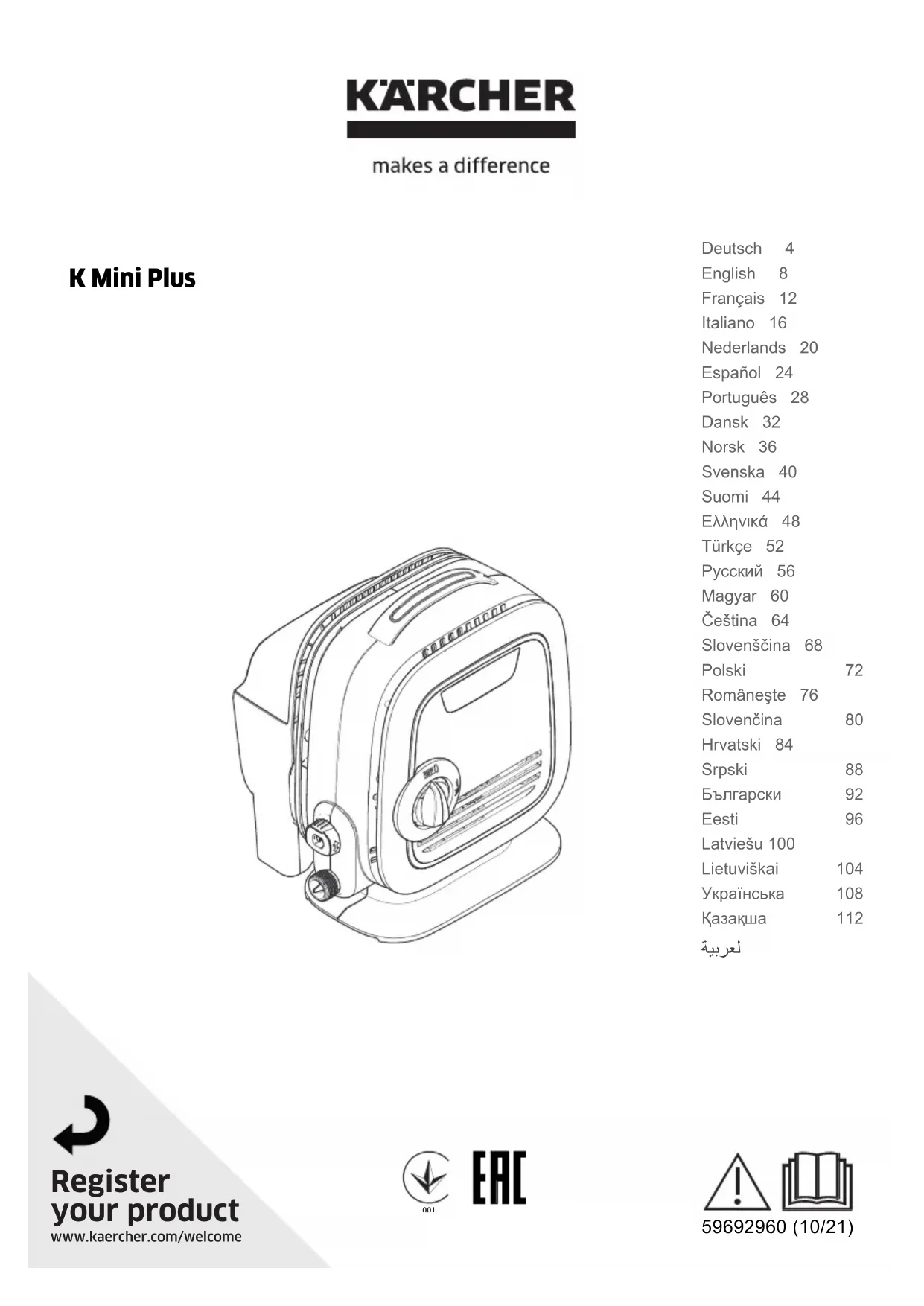 Retrouvez gratuitement la notice de l'appareil K Mini Plus Kärcher au format PDF.
