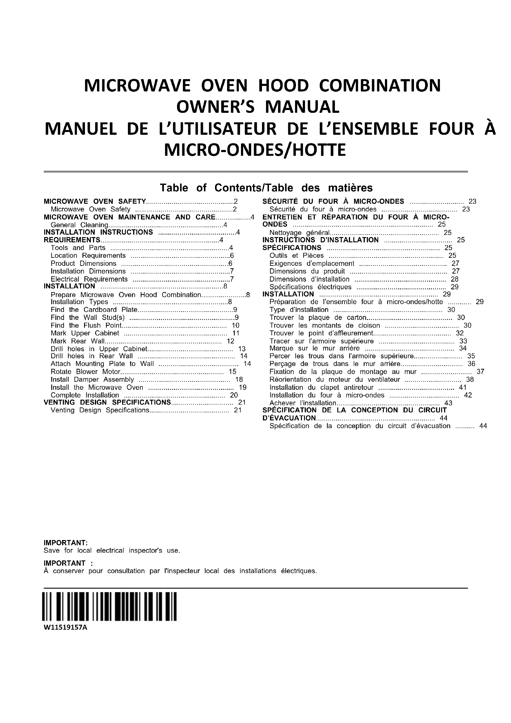 W11519157A IMPORTANT: Save for local electrical inspector's use. IMPORTANT : À conserver pour consultation par l'inspecteur local des installations électriques.