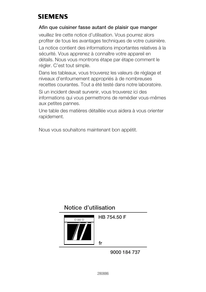 Retrouvez gratuitement la notice de l'appareil HB 754.50 F SIEMENS au format PDF.