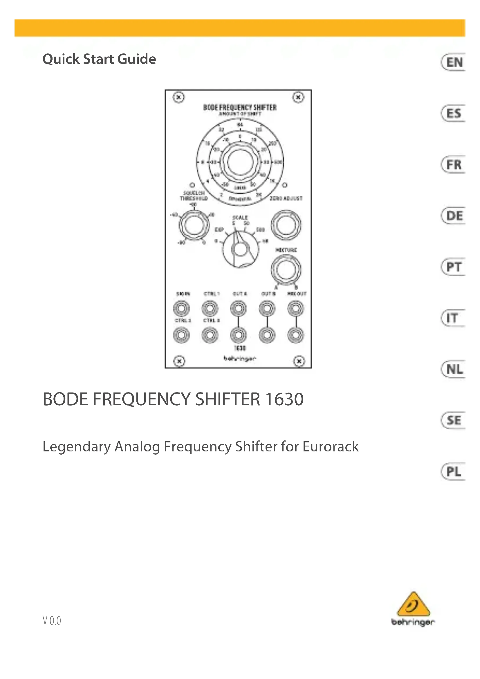 Bode Frequency Shifter 1630 - Synthétiseur BEHRINGER - Notice d'utilisation et mode d'emploi gratuit
