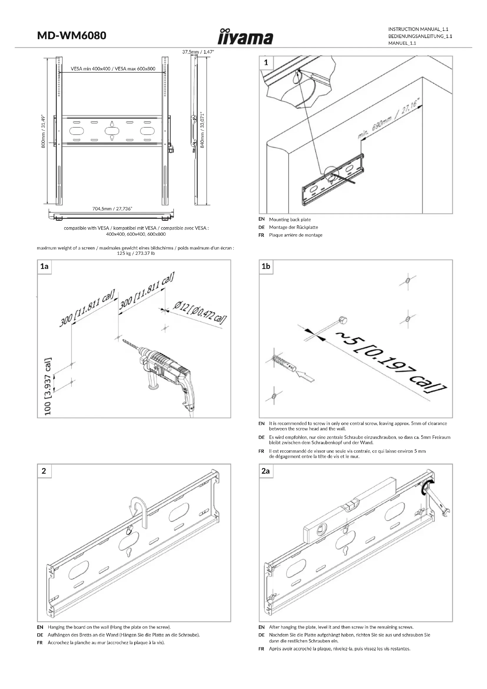 MD-WM6080 - Support écran plat IIYAMA - Notice d'utilisation et mode d'emploi gratuit