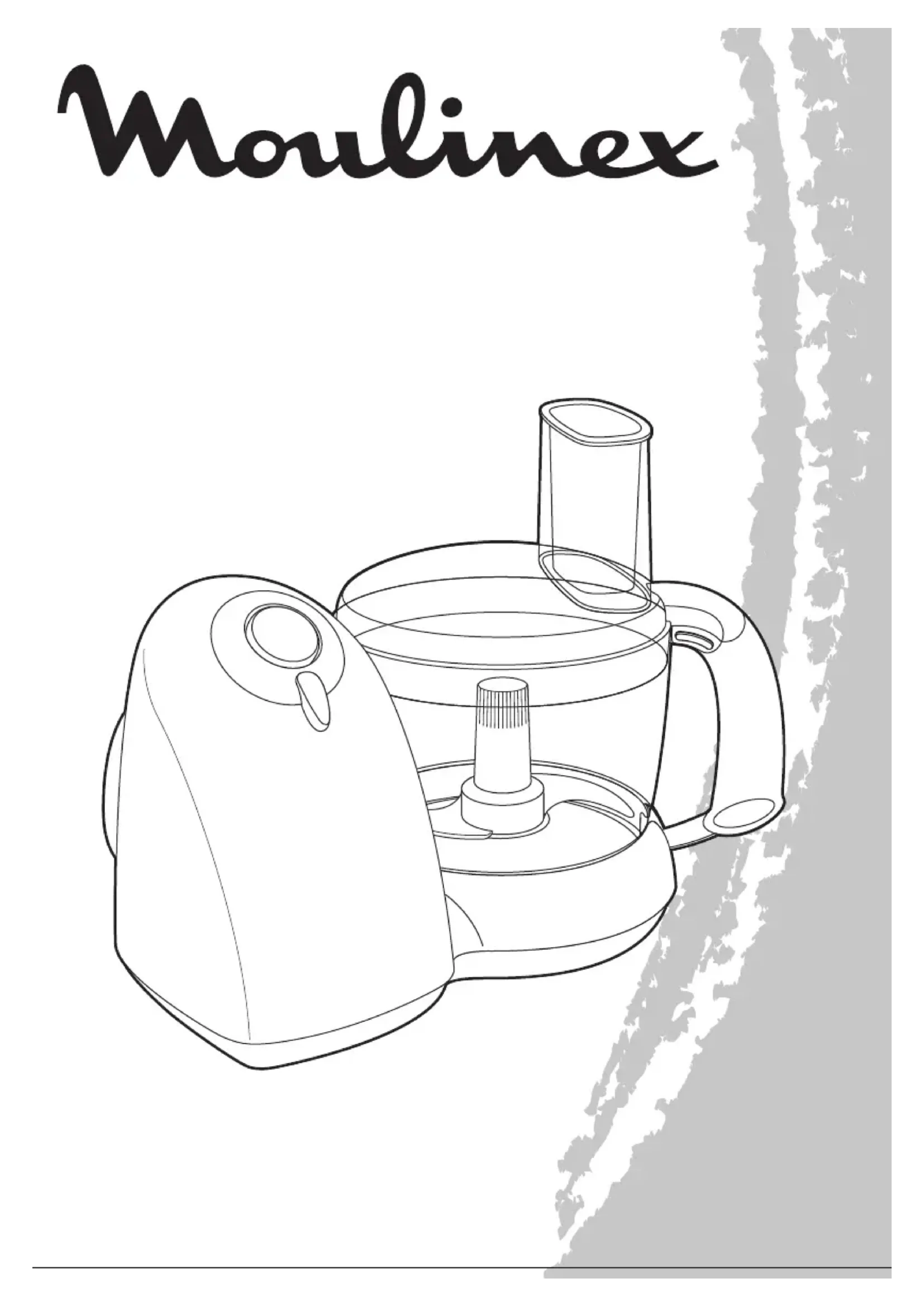 Sommaire.PM6.5 20/02/06, 15:3834 Nous vous remercions d’avoir choisi un appareil de la gamme Moulinex qui est exclusivement prévu pour la préparation des aliments, à usage domestique à l’intérieur de la maison. Les accessoires contenus dans le modèle que vous venez d’acheter sont représentés sur l’étiquette située sur le dessus de l’emballage. Conseils de sécurité - Lisez attentivement le mode d’emploi avant la première utilisation de votre appareil : une uti- lisation non conforme au mode d’emploi déga- gerait Moulinex de toute responsabilité. - Ne laissez pas l’appareil fonctionner sans surveillance particulièrement en présence de jeunes enfants ou de personnes handicapées. - Assurez-vous de la concordance du voltage. Toute erreur de branchement annule la garantie. - Débranchez toujours l’appareil dès que vous cessez de l’utiliser, lorsque vous le nettoyez ou en cas de coupure de courant. - N’utilisez pas votre appareil s’il ne fonctionne pas correctement, s’il a été endommagé ou si le câble d’alimentation ou la fiche sont endom- magés. Afin d’éviter tout danger, faites-les obli- gatoirement remplacer par un centre service agréé Moulinex (voir liste dans le livret service). - Toute intervention autre que le nettoyage et l’en- tretien usuel par le client doit être effectuée par un centre service agréé Moulinex. - Ne mettez pas l’appareil, le câble d’alimenta- tion ou la fiche dans du liquide. - Ne laissez pas le câble d’alimentation pendre à portée de mains des enfants, être à proxi- mité ou en contact avec les parties chaudes de l’appareil, près d’une source de chaleur ou sur un angle vif. (Utilisez l’enrouleur de cordon!). - Pour votre sécurité, n’utilisez que des accessoires et des pièces détachées Moulinex, adaptés à votre appareil. - Manipulez le couteau (c1) ou les lames avec précaution ; ils sont extrêmement aiguisés. Vous devez obligatoirement retirer le couteau avant de vider le bol de son contenu. - Quand vous voulez râper, trancher ….,utilisez toujours le poussoir (b1) pour les guider dans la cheminée, jamais les doigts, ni un ustensile. Ne touchez jamais les pièces en mouvement. - Ne pas utiliser le bol comme récipient (congélation, cuisson, stérilisation). Mise en service - Sortez les accessoires de leur emballage et nettoyez-les à l’eau chaude. - Placez le bloc moteur sur une surface plane, propre et sèche puis branchez votre appareil. Utilisation du bouton de commande uniquement lorsque le bol et le couvercle sont mis en place sur l’appareil: (Ne faites pas fonctionner votre appareil à vide)... Pulse (a3) pour un meilleur contrôle de certaines préparations... Marche continue (a3) tournez-le jusqu’en position 1... Arrêt : Pour arrêter revenir en position 0... Déverrouillage couvercle : appuyer sur (a4) puis déverrouillez le couvercle. Conseils d’utilisation Votre Robot vous permet de préparer au maxi- mum de 150 à 800 g - Volume du bol : 1,5 litres. - Posez le bol (b3) sur la base du robot. - Placer l’accessoire choisi. - Placez et verrouillez le couvercle (b2). - Mettez en marche... PÉTRIR/MÉLANGER/HACHER (*) - Emboîtez le couteau métal (c1) (enlever le protège couteau) sur l’axe du bol. - Mettez les ingrédients dans le bol. Préparations . Mélanger - Vous pouvez mélanger 800 g de pâte légère (biscuit, quatre-quarts) en 1 min 30 à 2 min 20... Pétrir - Vous pouvez pétrir au maximum 600 g de pâte lourde (sablée, brisée, à pain) en 30 secon- des. Attention Arrêtez l’appareil dès que vous constatez la formation de la boule de pâte... Hacher Vous pouvez en 15 à 20 secondes hacher 150 à 300 g d’aliments : des produits durs (fromages, fruits secs), des légumes durs (carottes, céleri, etc.), des légumes tendres (oignons, épinards,...), des viandes crues et cuites (désossées, dénervées et coupées en dés), des poissons crus ou cuits. Ne hachez pas de produits trop durs (glace, sucre) ou nécessitant une mouture fine (blé, café)... MIXER (*) - Emboîtez le couteau métal (c1) sur l’axe du bol. - Posez le Spiral System (f1) sur le couteau. - Puis mettez les ingrédients dans le bol. Préparations