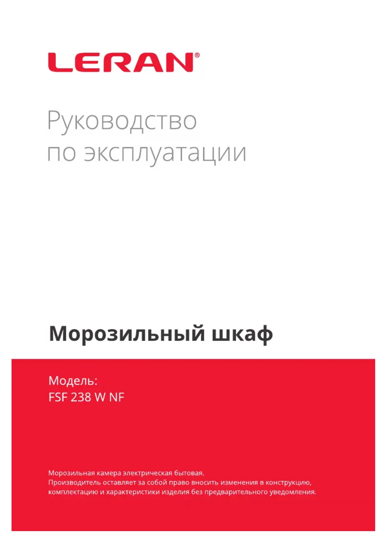 Retrouvez gratuitement la notice de l'appareil FSF 238 W NF LERAN au format PDF.