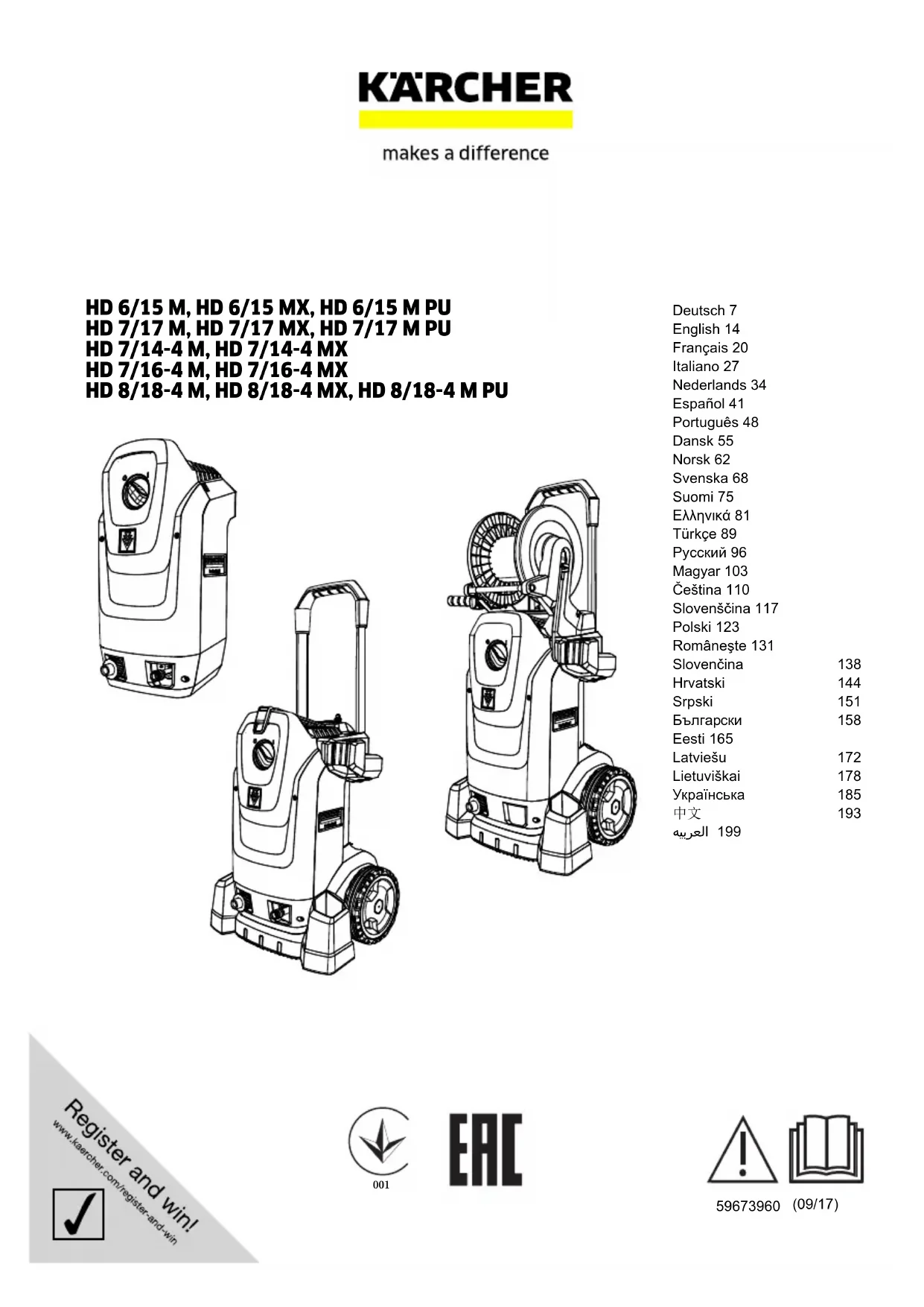 • /l) Fer : < 0,5 mg/l Manganèse : < 0,05 mg/l Measured Guaranteed HD 6/15 M 87 90 HD 6/15 MX 87 90 HD 6/15 M PU 90 92 HD 7/17 M 92 95 HD 7/17 MX 91 94 HD 7/17 M PU 92 95 HD 7/14-4 M 81 84 HD 7/14-4 MX 82 85 HD 7/16-4 M 83 86 HD 7/16-4 MX 86 88 HD 8/18-4 M 88 91 HD 8/18-4 MX 87 89 HD 8/18-4 M PU 90 92 Chief Executive Officer Head of Approbation Remarques générales p. 20