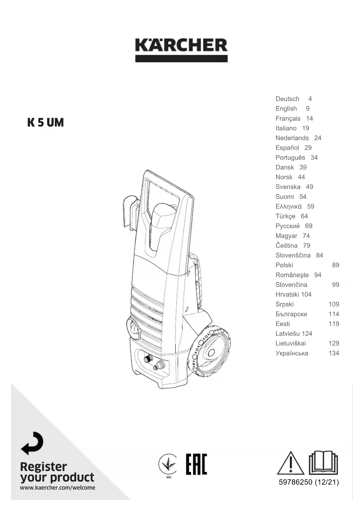 Retrouvez gratuitement la notice de l'appareil K 5 UM Kärcher au format PDF.