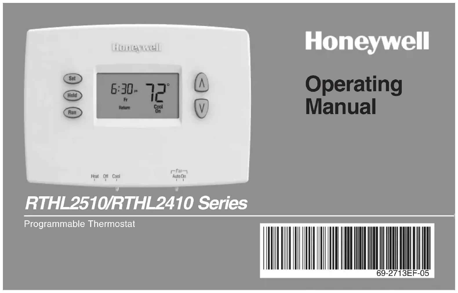 - MettrelesélecteurdusystèmeàCool,etréglerlepointdeconsigneàune températureinférieureàlatempératureambiante(voirpage7). En cas de problème21 69-2713EF—05 Série RTHL2510/RTHL2410 Garantie limitée d’1 an Honeywellgarantitceproduit,àl’exceptiondespiles,contretoutdéfautdepièceoudemain-d’œuvre,durantunepérioded’un(1)anàpartirdeladated’achat parleconsommateursileproduitestutiliséetentretenuconvenablement.Encasdedéfectuositéoudemauvaisfonctionnementpendantlapériodedegarantie, Honeywellremplaceraourépareraleproduit,àsadiscrétion. Sileproduitestdéfectueux, (i) le retourner avec la facture ou une autre preuve d’achat date au lieu d’achat; ou (ii)appelerleserviceàlaclientèledeHoneywellencomposantle1-800-468-1502.Leserviceàlaclientèledéterminerasileproduitdoitêtreretournéà l’adressesuivante:HoneywellReturnGoods,Dock4MN10-3860,1885DouglasDr.N.,GoldenValley,MN55422,ousiunproduitderemplacementpeutvous êtreexpédié. Laprésentegarantienecouvrepaslesfraisderetraitouderéinstallation.Laprésentegarantienes’appliquerapass’ilestdémontréparHoneywellqueladéfec- tuositéoulemauvaisfonctionnementsontdusàunendommagementduproduitalorsqueleconsommateurl’avaitensapossession. LaresponsabilitéexclusivedeHoneywellselimiteàréparerouàremplacerleproduitconformémentauxmodalitéssusmentionnées.HONEYWELLN’ESTEN