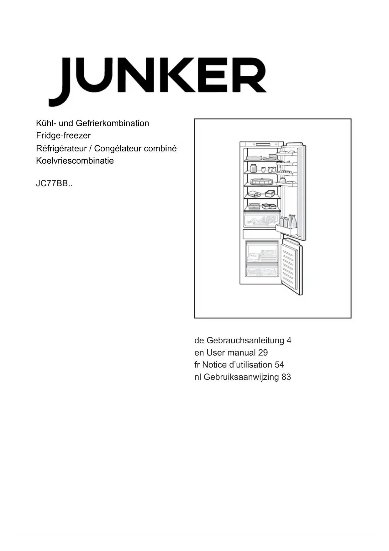 JC77BBSF0 - Réfrigérateur Junker - Notice d'utilisation et mode d'emploi gratuit