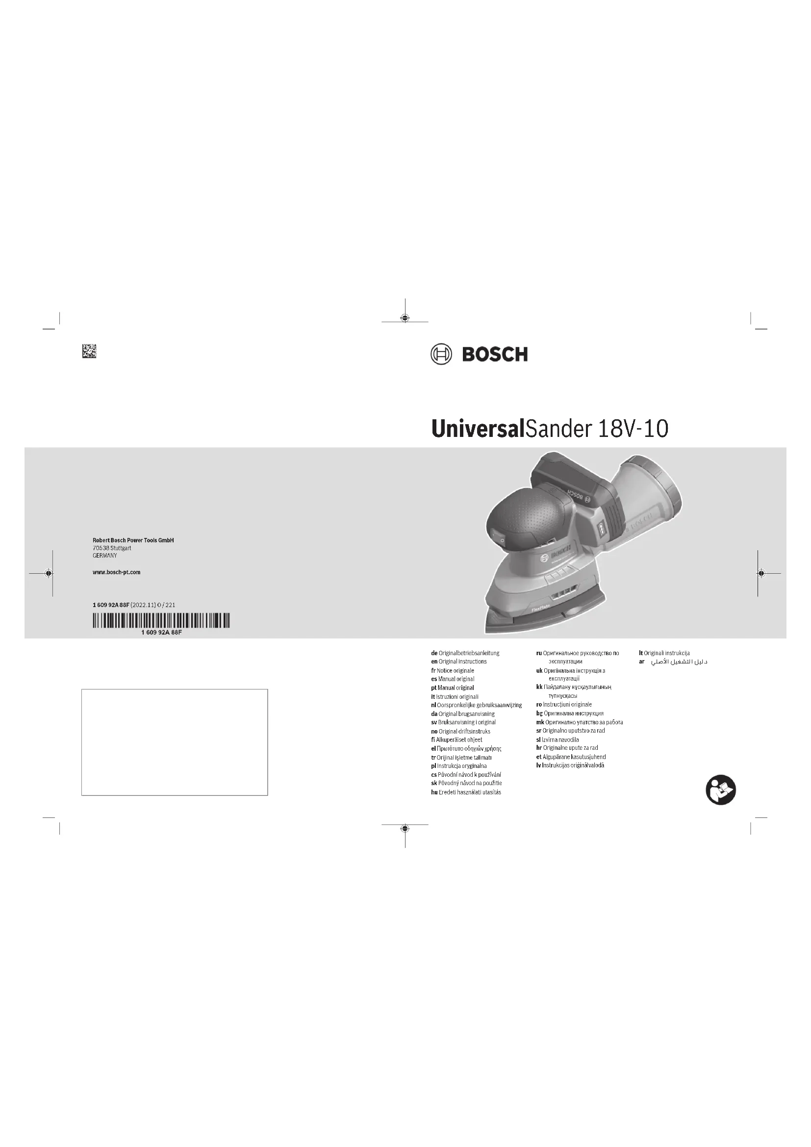Retrouvez gratuitement la notice de l'appareil UniversalSander 18V-10 BOSCH au format PDF.