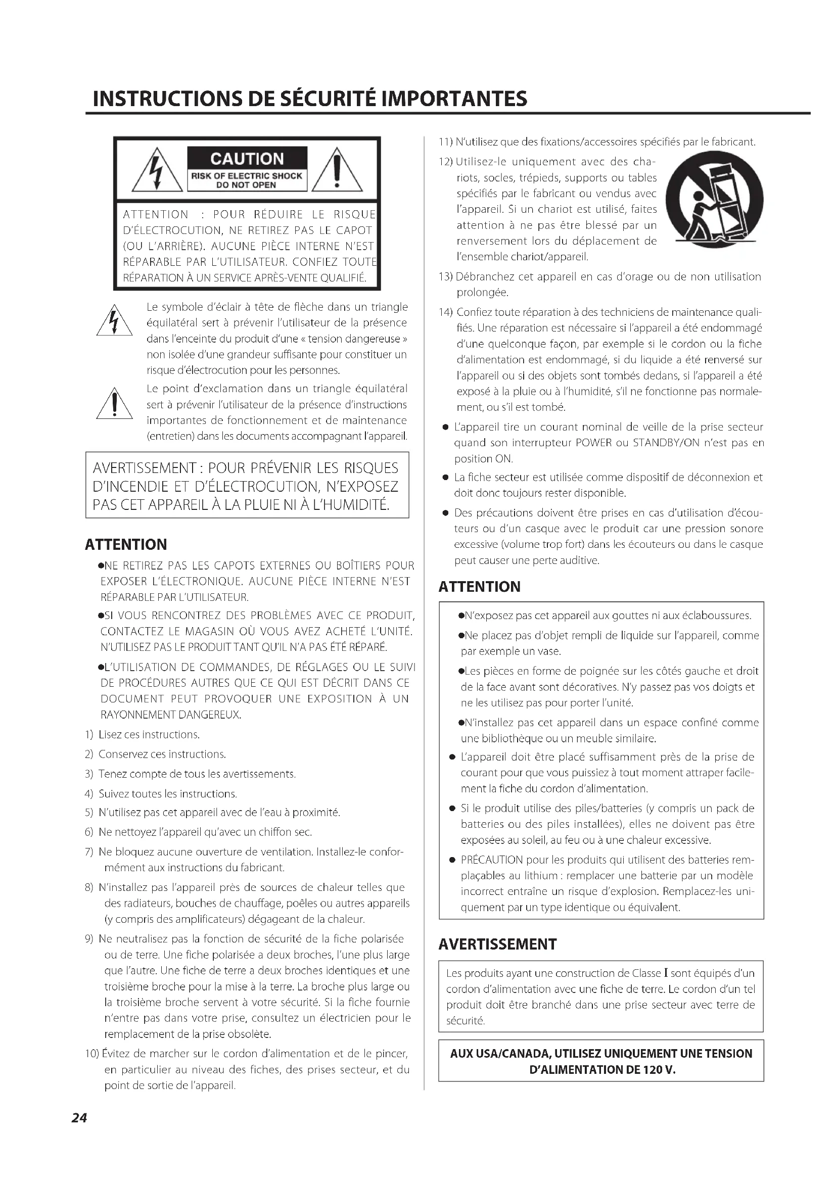 INSTRUCTIONS DE SÉCURITÉ IMPORTANTES .......................24
