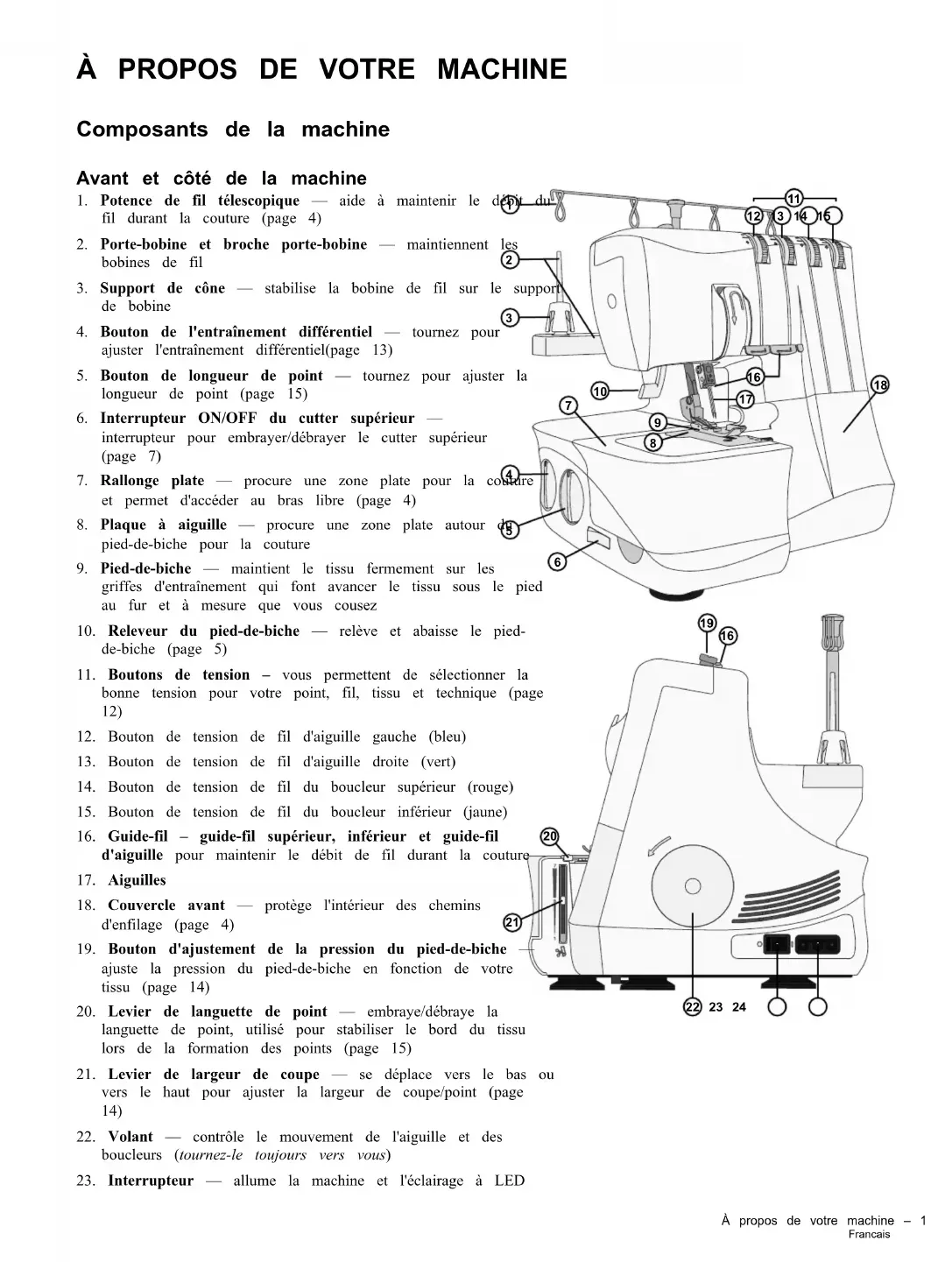 - Overlock 3 fils, large (et étroit) p. 17