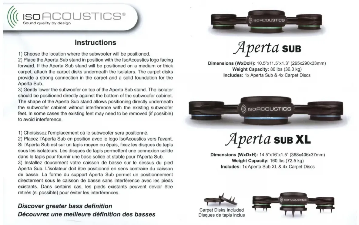 Retrouvez gratuitement la notice de l'appareil Aperta Sub XL IsoAcoustics au format PDF.