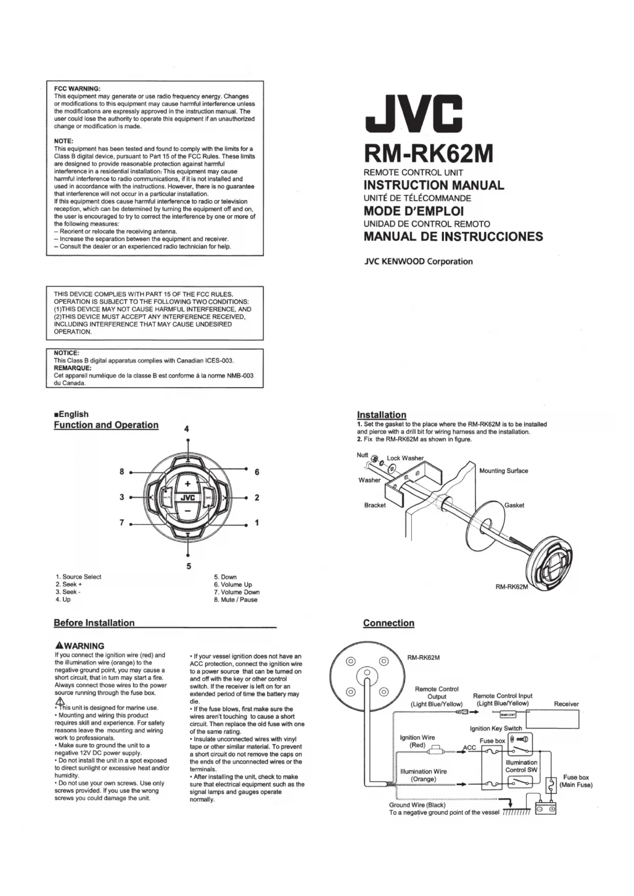 Retrouvez gratuitement la notice de l'appareil RM-RK62M JVC au format PDF.