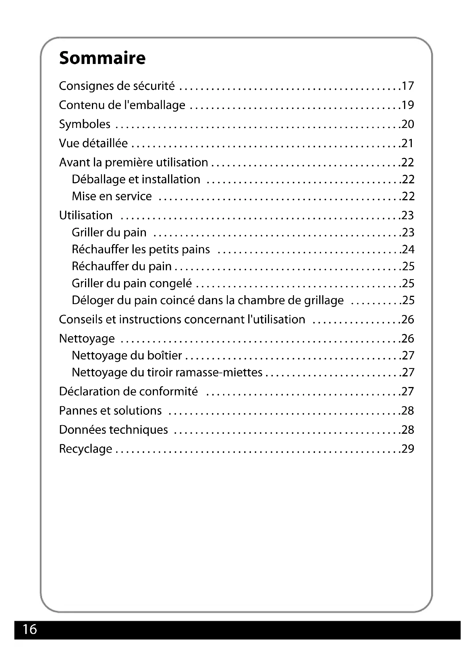 - Déloger du pain coincé dans la chambre de grillage p. 25