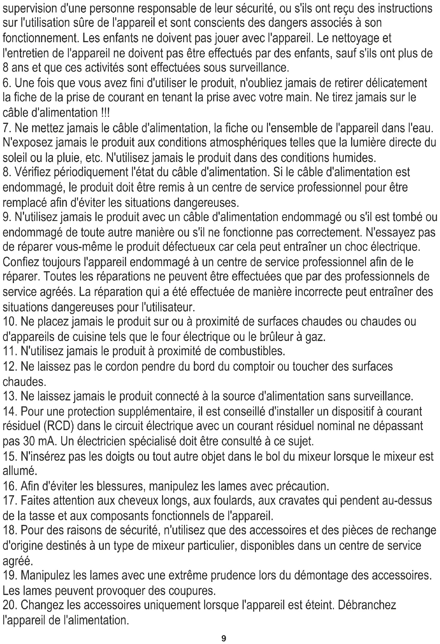 21. Ne mettez aucun produit autre que des aliments et des liquides dans le bol du mixeur.