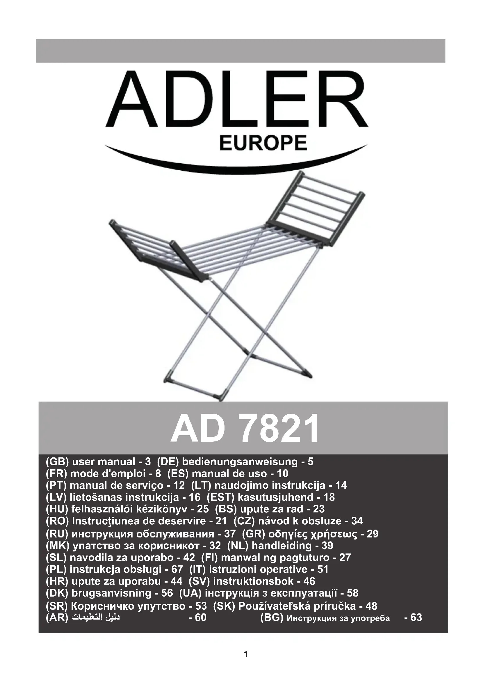 Retrouvez gratuitement la notice de l'appareil AD 7821 ADLER au format PDF.