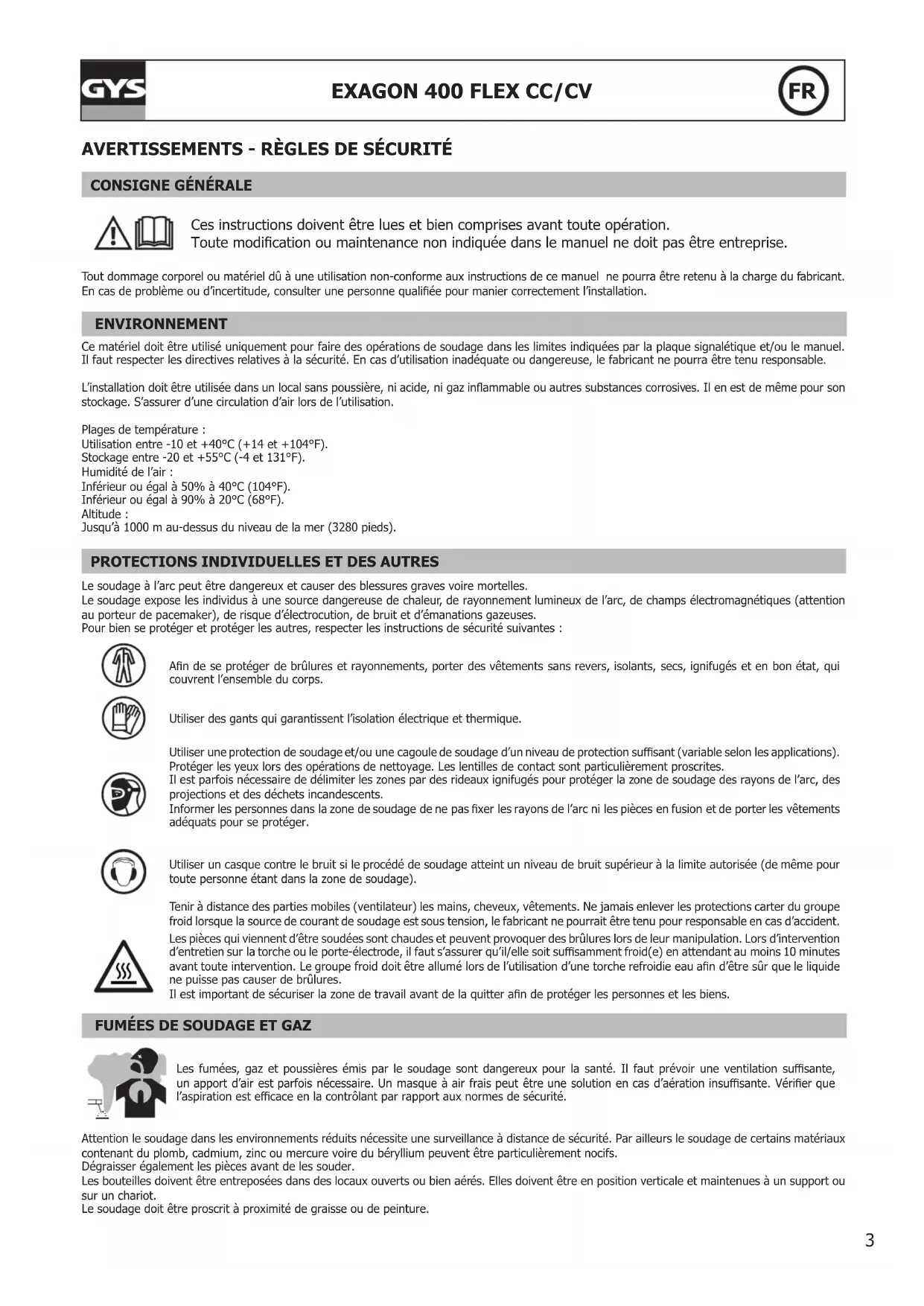 MODE D'EMPLOI Exagon 400 Flex CC/CV GYS
