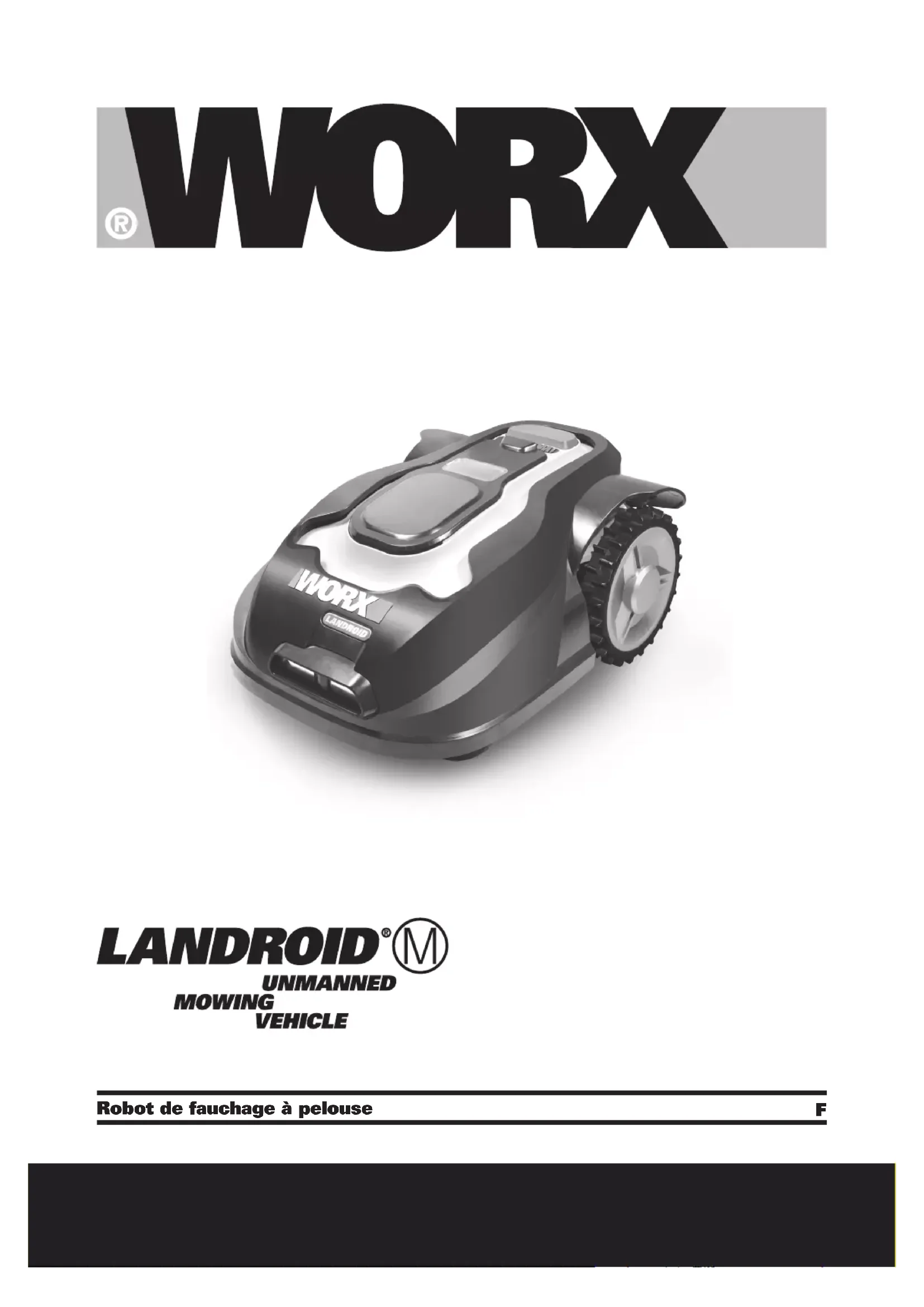 rebut séparément. j) N’utilisez pas d’autre chargeur que celui spécifié par WORX. N'utilisez pas d'autre chargeur que celui spécifiquement fourni avec l'appareil. Un chargeur destiné à un type de batterie donné peut être à l’origine d’un incendie s’il est utilisé avec une autre batterie. k) N'utilisez en aucun cas une batterie autre que celle prévue pour cet appareil. l) La batterie doit être tenue hors de portée des enfants. m) Gardez la documentation d'origine du produit afin de pouvoir vous y référer ultérieurement. n) Respectez les procédures de mise au rebut.Robot de fauchage à pelouse F