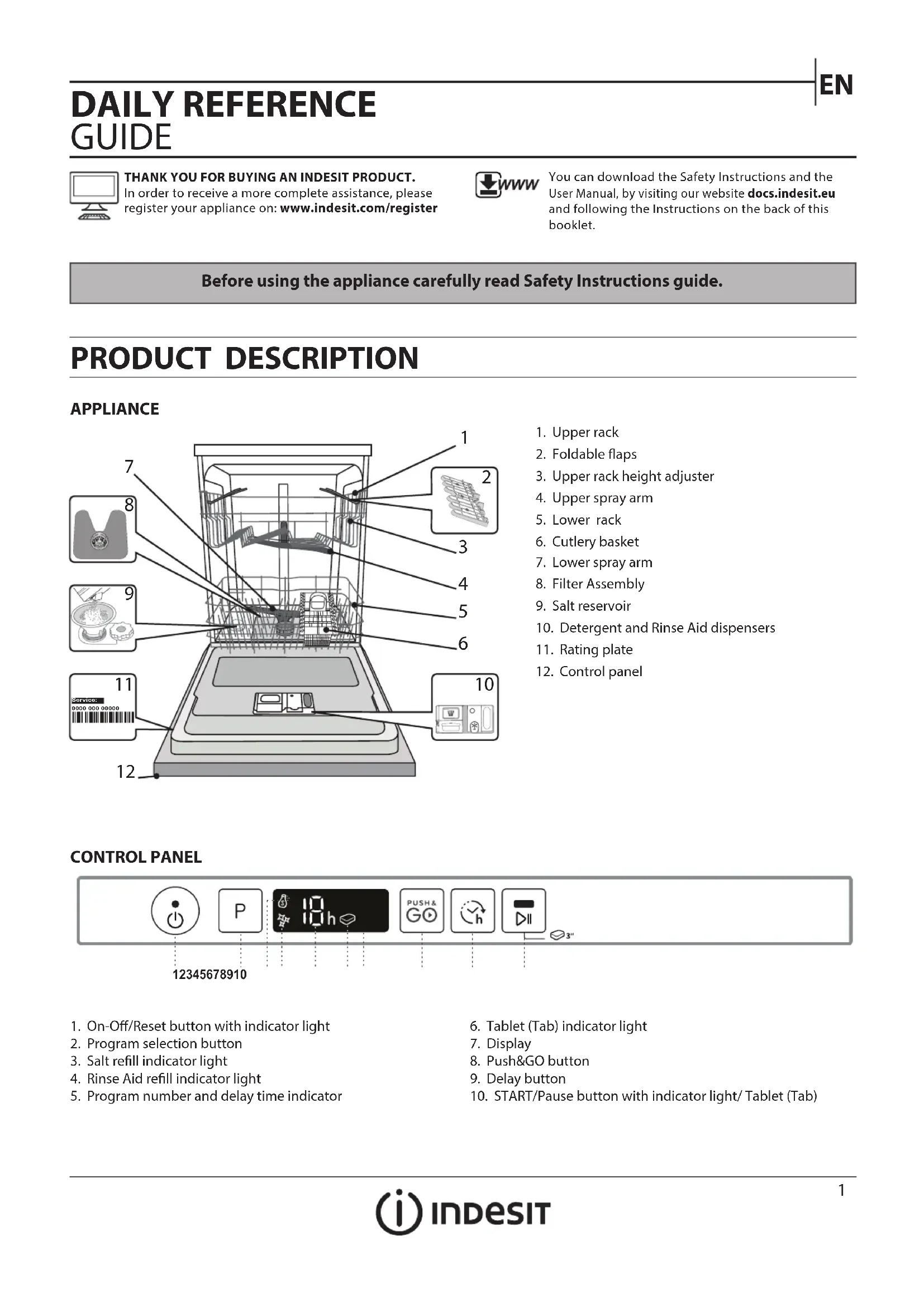 APPAREILPANNEAU DE COMMANDEMERCI D’AVOIR CHOISI UN PRODUIT INDESIT. Afin de recevoir une assistance plus complète, merci d’enregistrer votre appareil sur on: www.indesit.com/registerVous pouvez télécharger les Consignes de sécurité et le Manuel de l’utilisateur, en visitant notre site Internet docs.indesit.eu et en suivant les instructions figurant au verso du présent fascicule.0000 000 00000 Service: