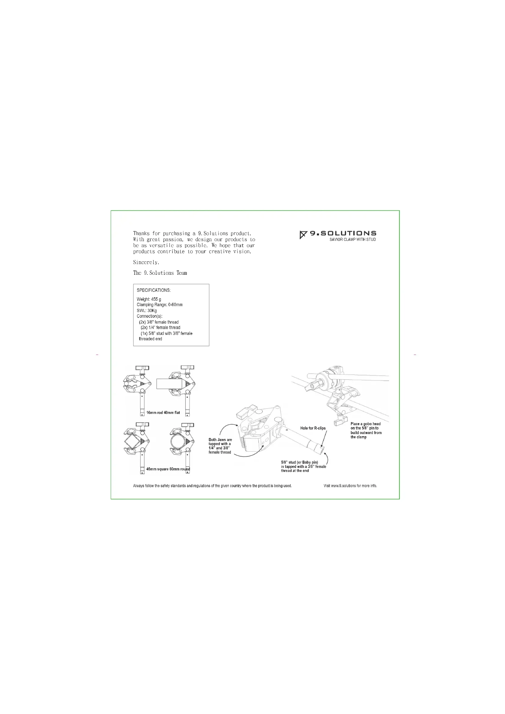 Savior Clamp With Stud - Éclairage 9.solutions - Notice d'utilisation et mode d'emploi gratuit