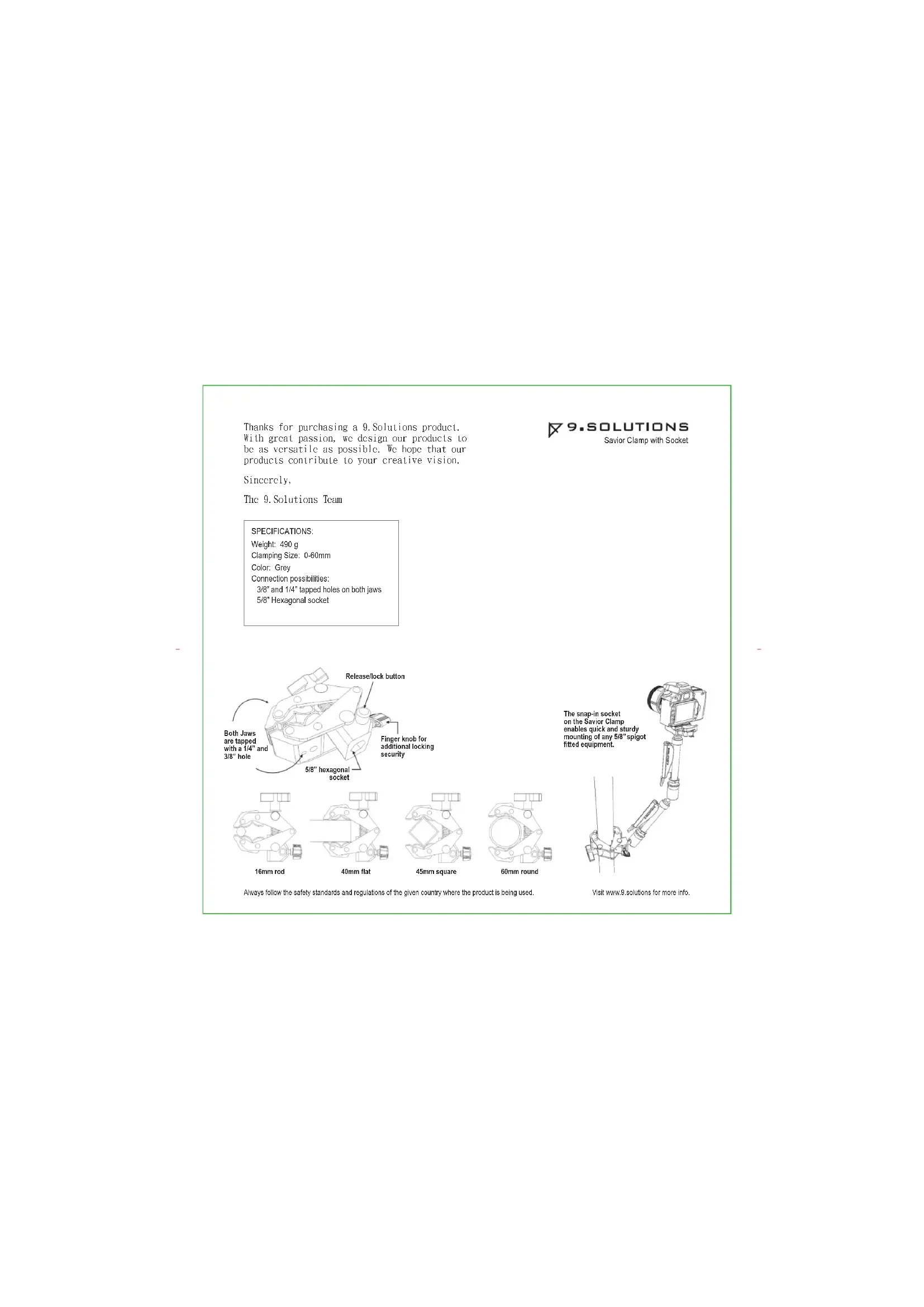 Retrouvez gratuitement la notice de l'appareil Savior Clamp With Socket 9.solutions au format PDF.