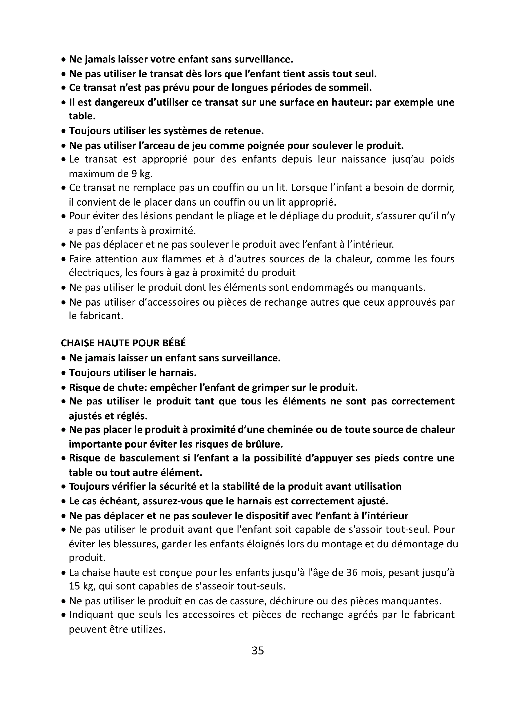 - Risque de chute: empêcher l’enfant de grimper sur le produit.