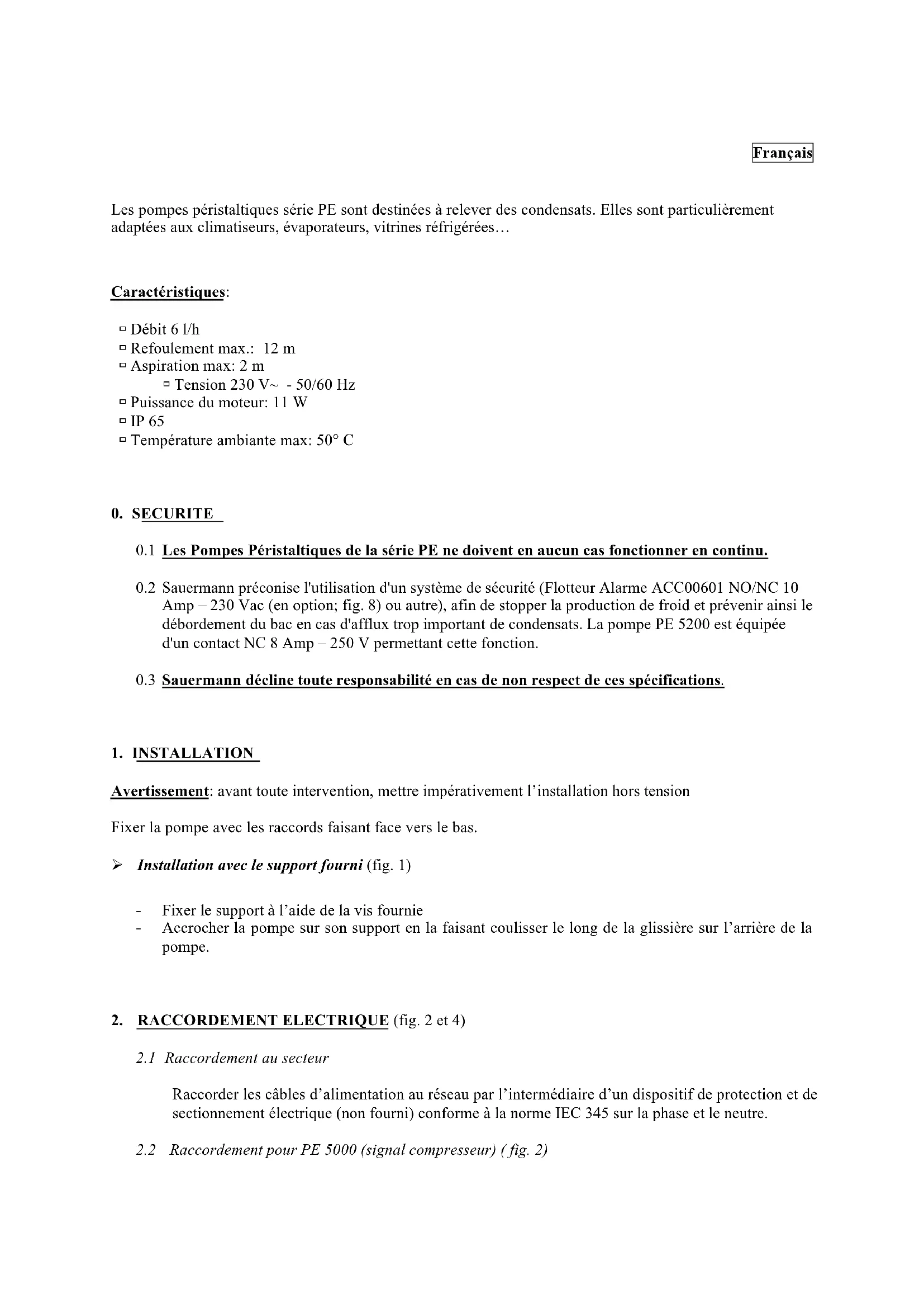 0.1 Les Pompes Péristaltiques de la série PE ne doivent en aucun cas fonctionner en continu.
