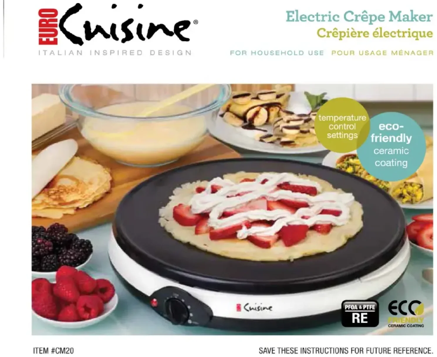 Retrouvez gratuitement la notice de l'appareil CM20 Euro Cuisine au format PDF.