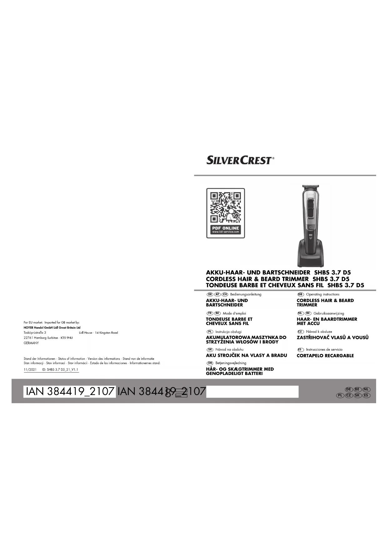 pièces Vous pouvez commander des accessoires pour la tondeuse à barbe et à cheveux 5 en 1 SHBS3.7D5. Commande en ligne shop.hoyerhandel.com