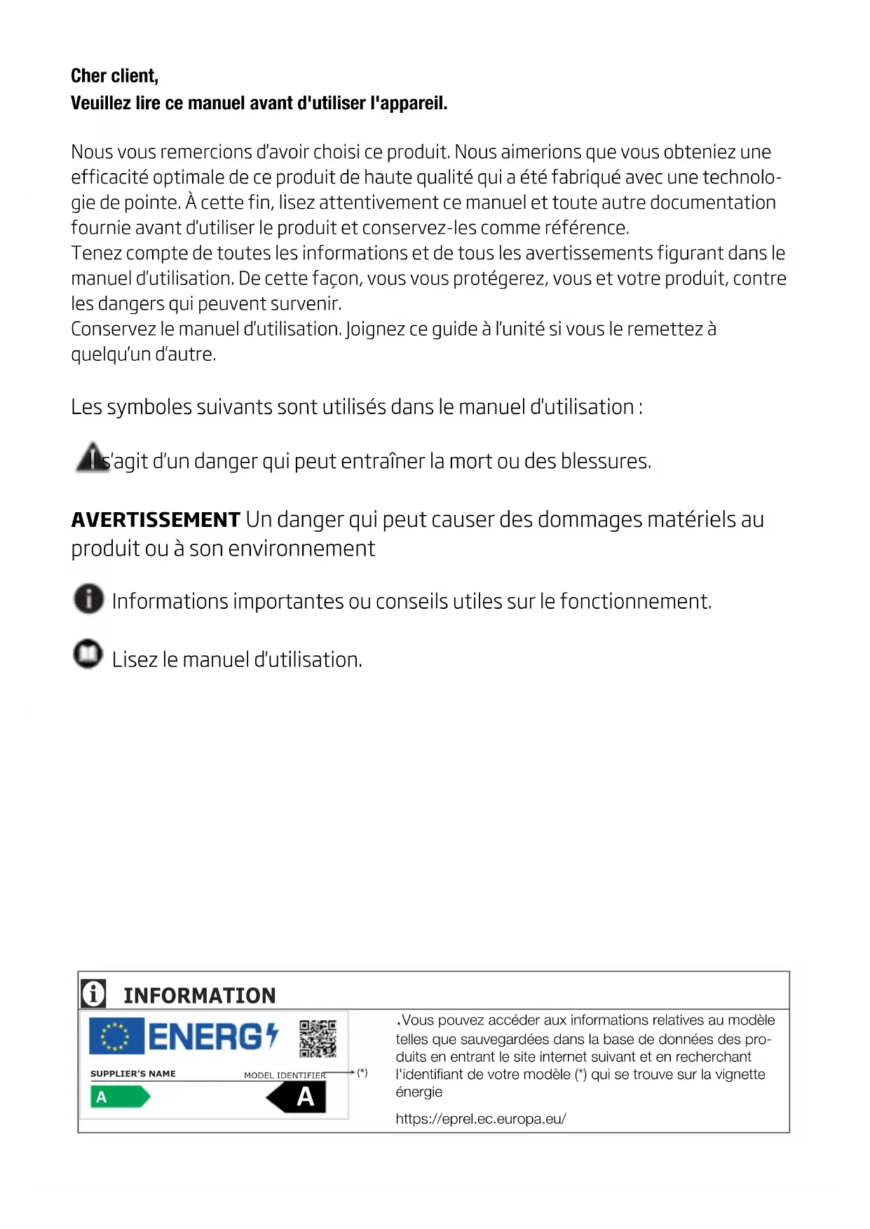 AVERTISSEMENT : Lisez d'abord la