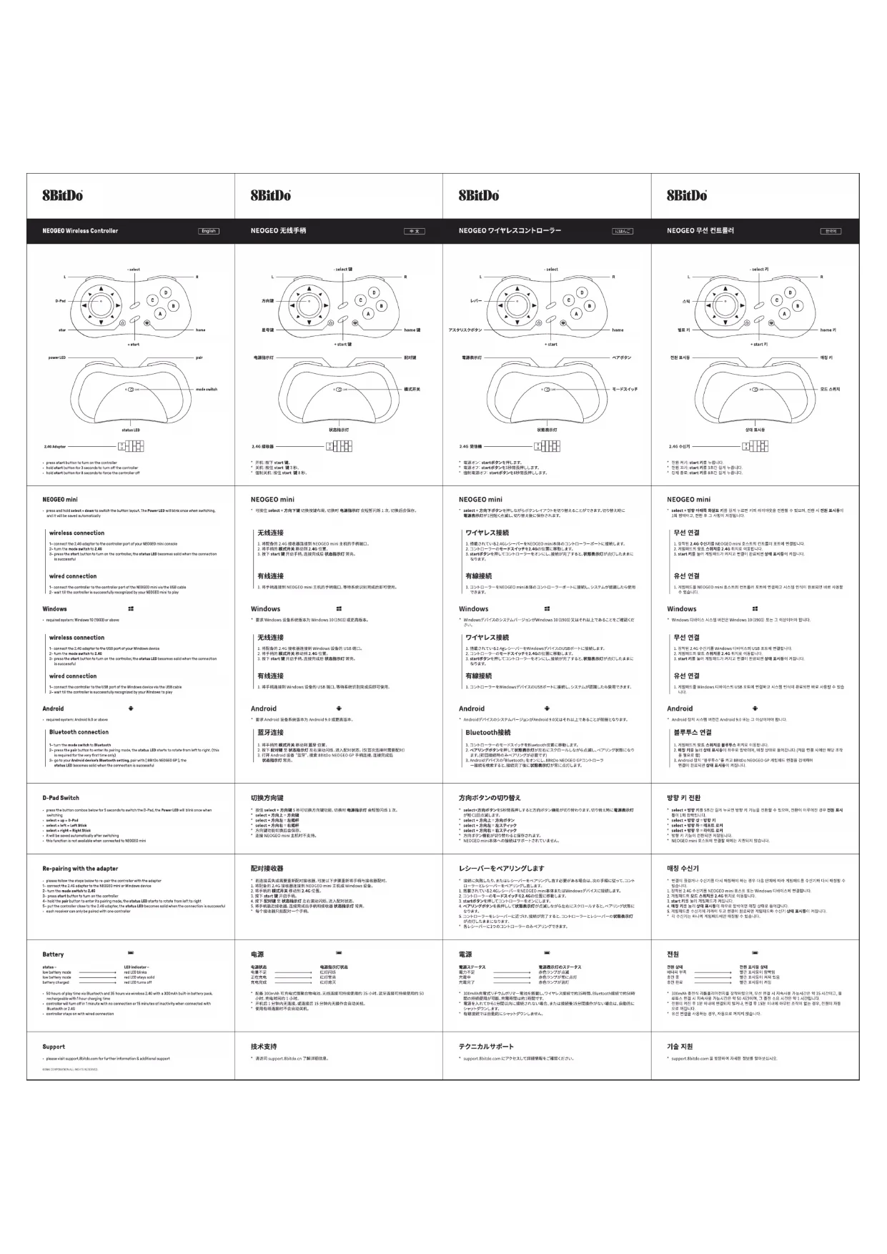 Retrouvez gratuitement la notice de l'appareil NEOGEO Wireless Controller 8BitDo au format PDF.