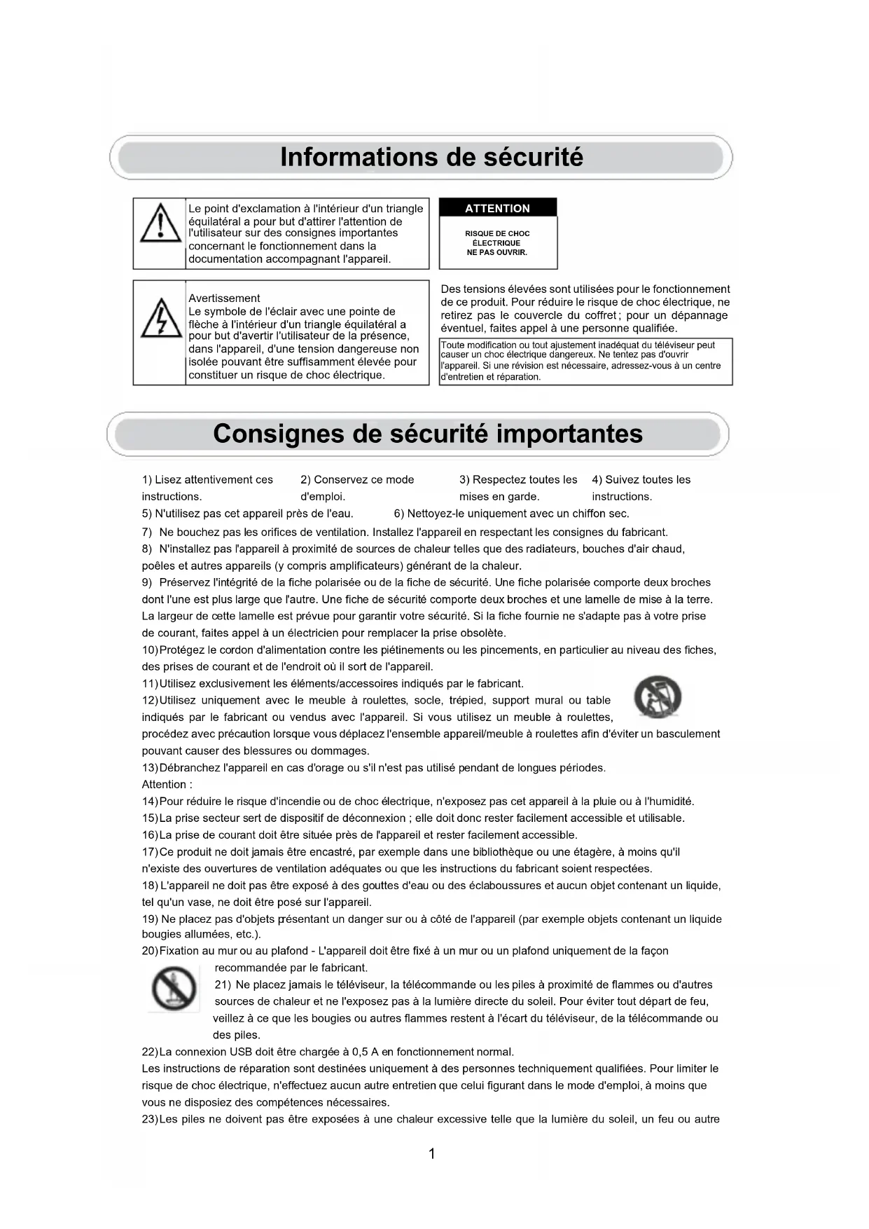 1. Utiliser des meubles ou des supports recommandés par le fabricant du téléviseur.