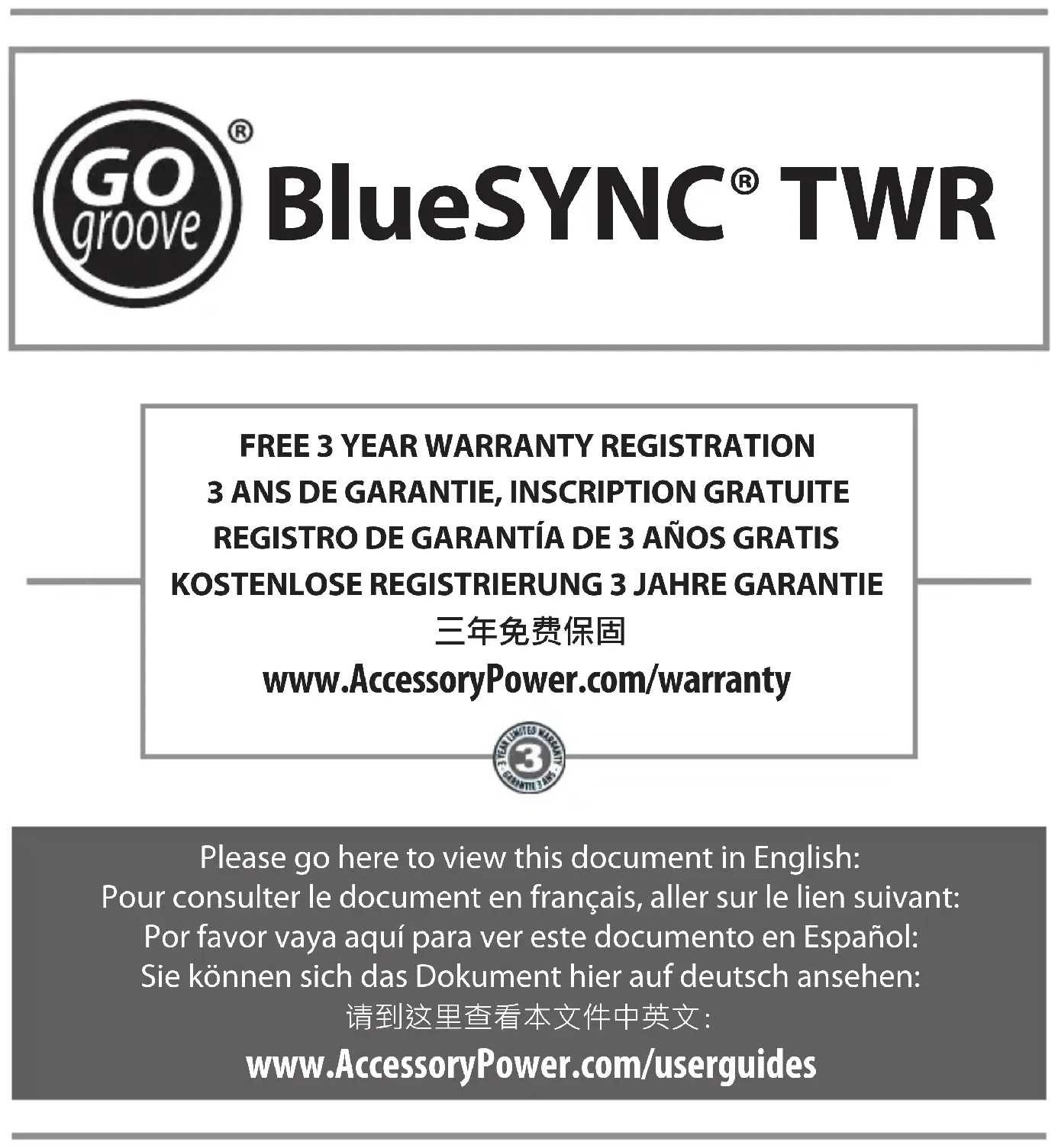 Retrouvez gratuitement la notice de l'appareil BlueSYNC TWR GOgroove au format PDF.