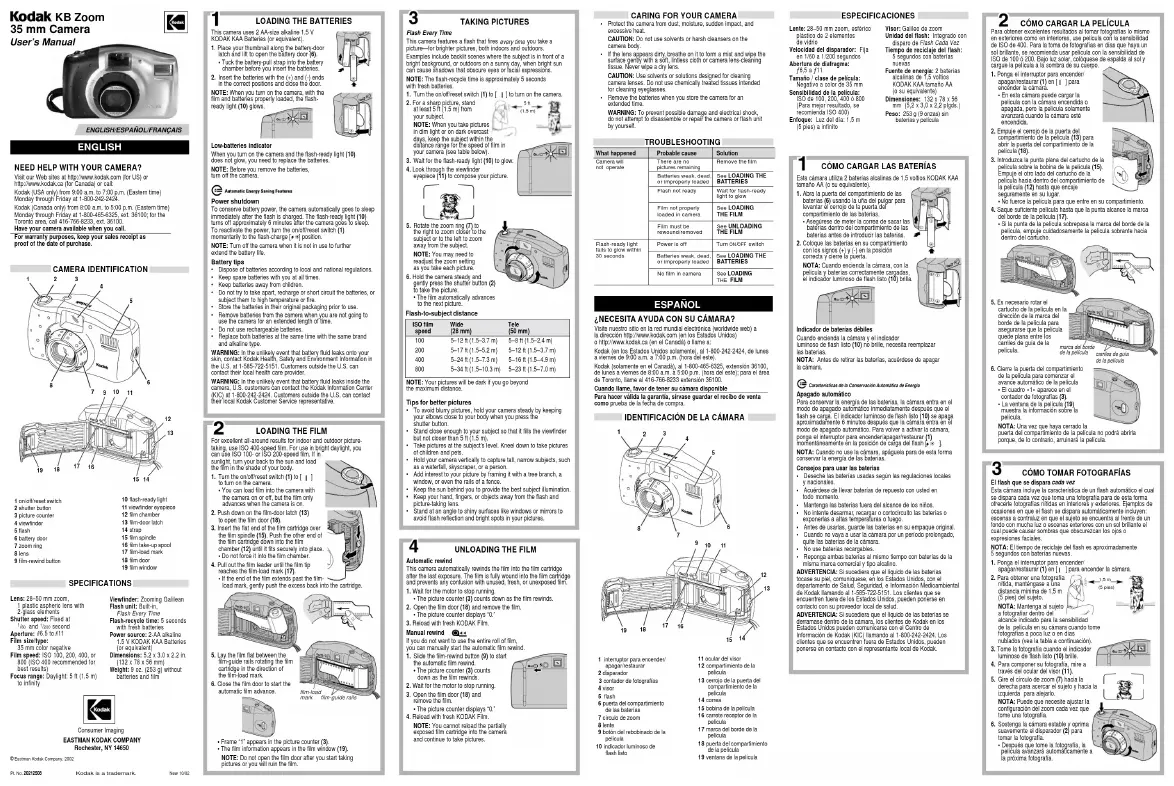 Retrouvez gratuitement la notice de l'appareil KB Zoom KODAK au format PDF.