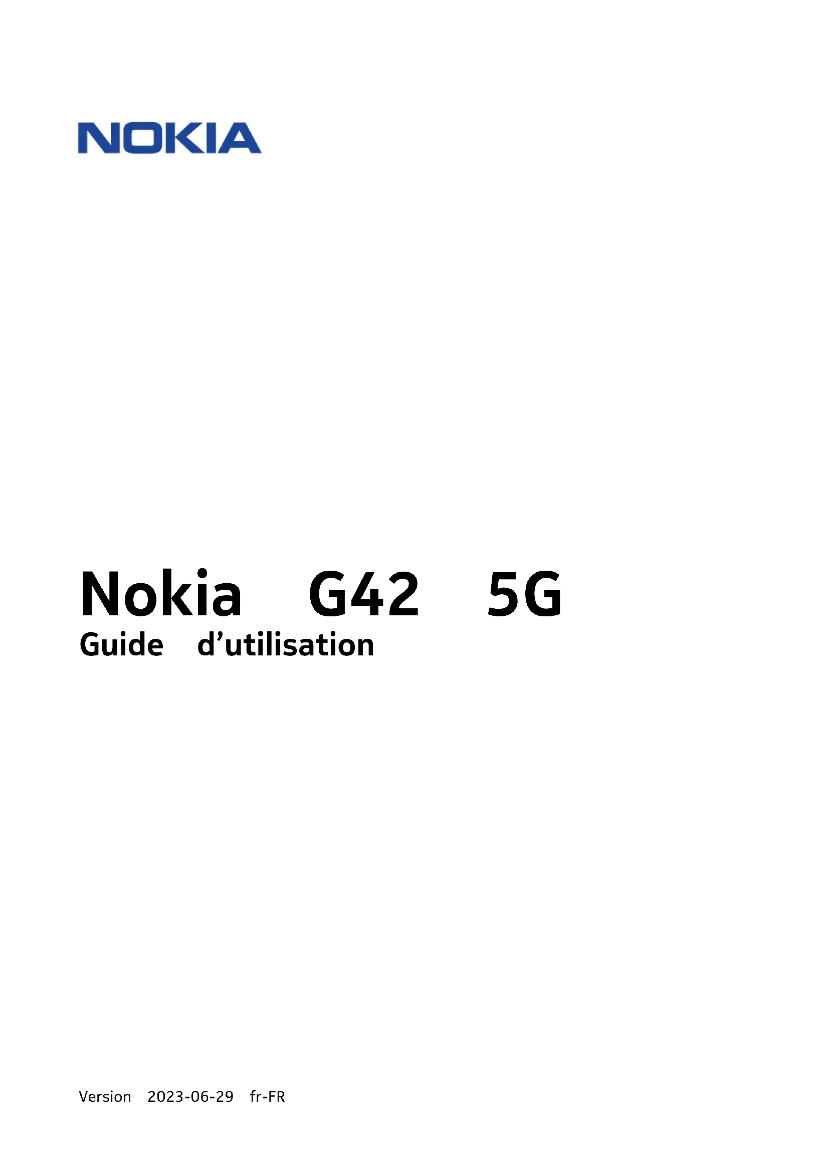 - Nokia G42 5G Guide d’utilisation Version 2023-06-29 fr-FRNokia G42 5G Guide d'utilisation Sommaire 1 À propos de ce guide d’utilisation 5 2 Prise en main 6 Gardez votre téléphone à jour p. 6