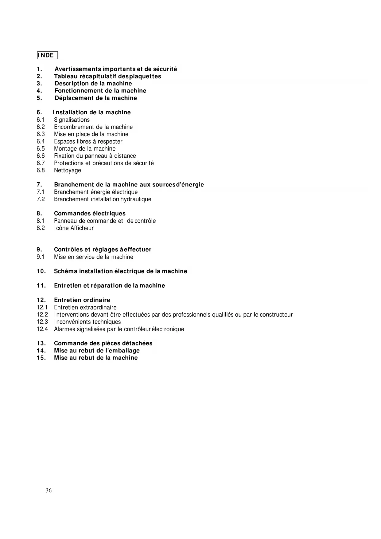 Il est interdit, lorsque la machine est en marche, d’ôter les protections prévues par le constructeur dans le but de sauvegarder l’intégrité de l’utilisateur.