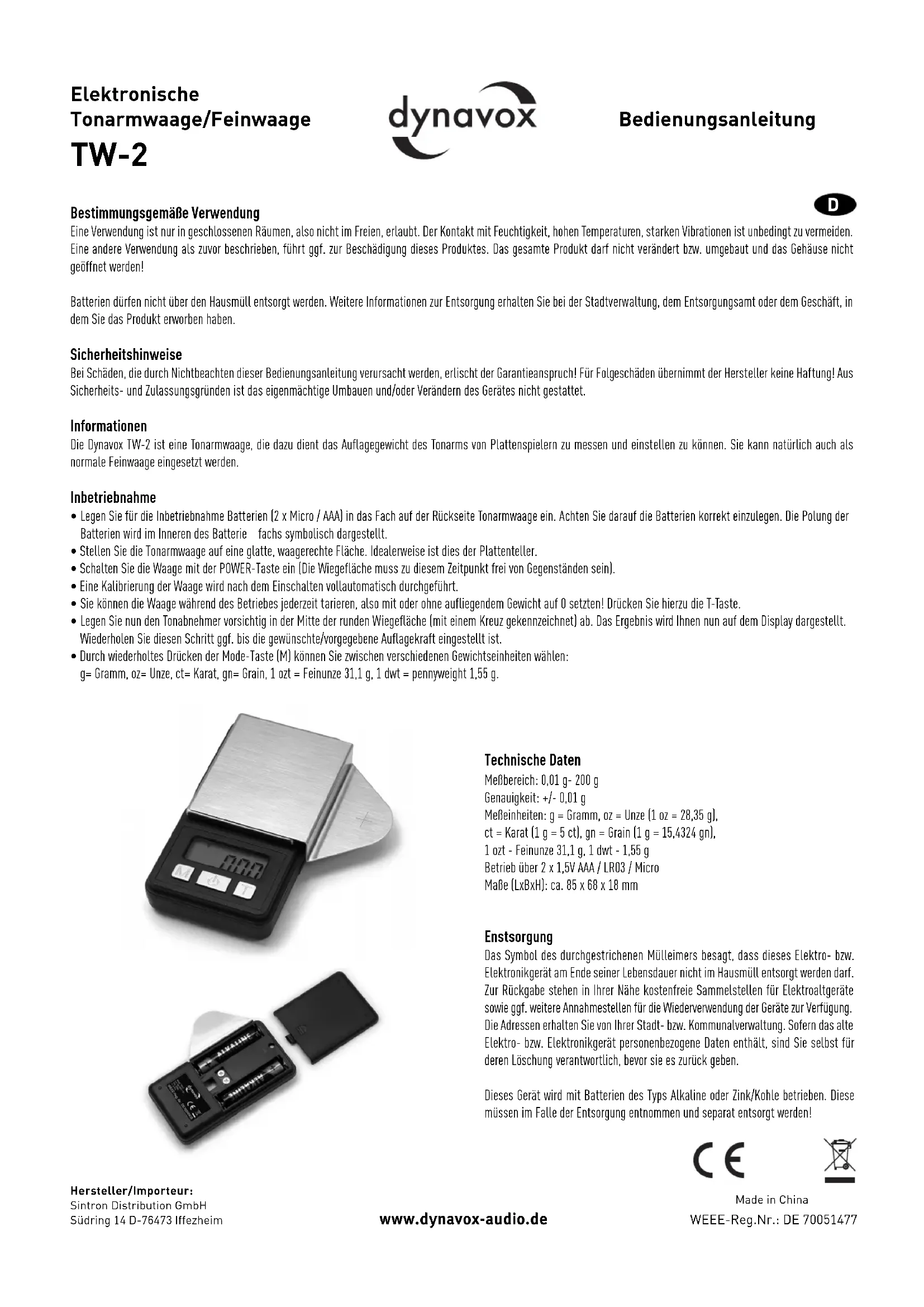 TW-2 - Equipement DJ Dynavox - Notice d'utilisation et mode d'emploi gratuit