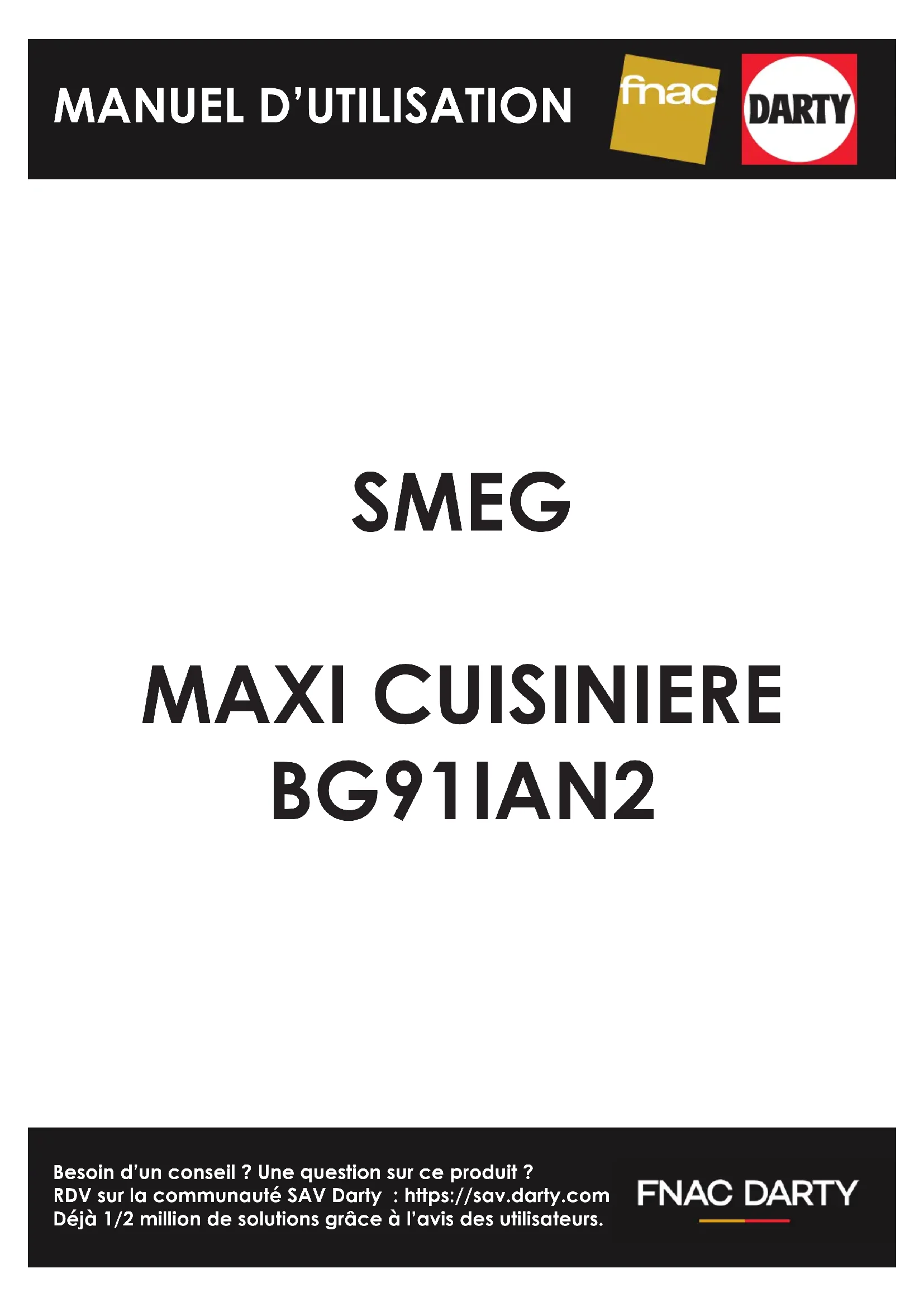 Besoin d’un conseil ? Une question sur ce produit ? RDV sur la communauté SAV Darty : https://sav.darty.com Déjà 1/2 million de solutions grâce à l’avis des utilisateurs. SMEG MAXI CUISINIERE BG91IAN2 MANUEL D’UTILISATIONSommaire