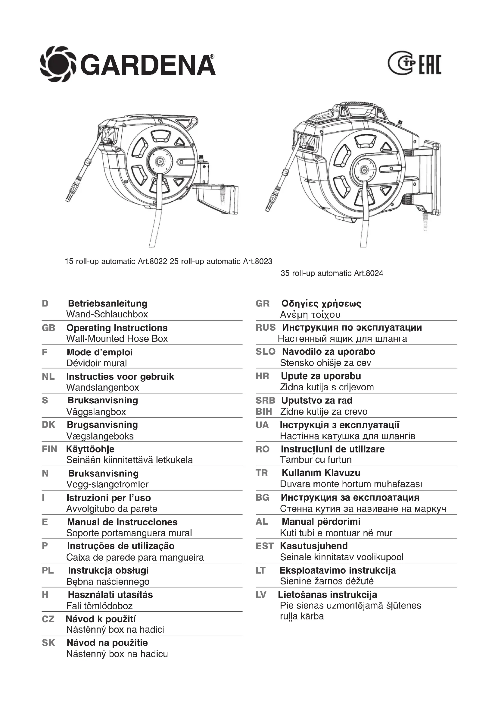 25 roll-up automatic - Tuyau d'arrosage GARDENA - Notice d'utilisation et mode d'emploi gratuit