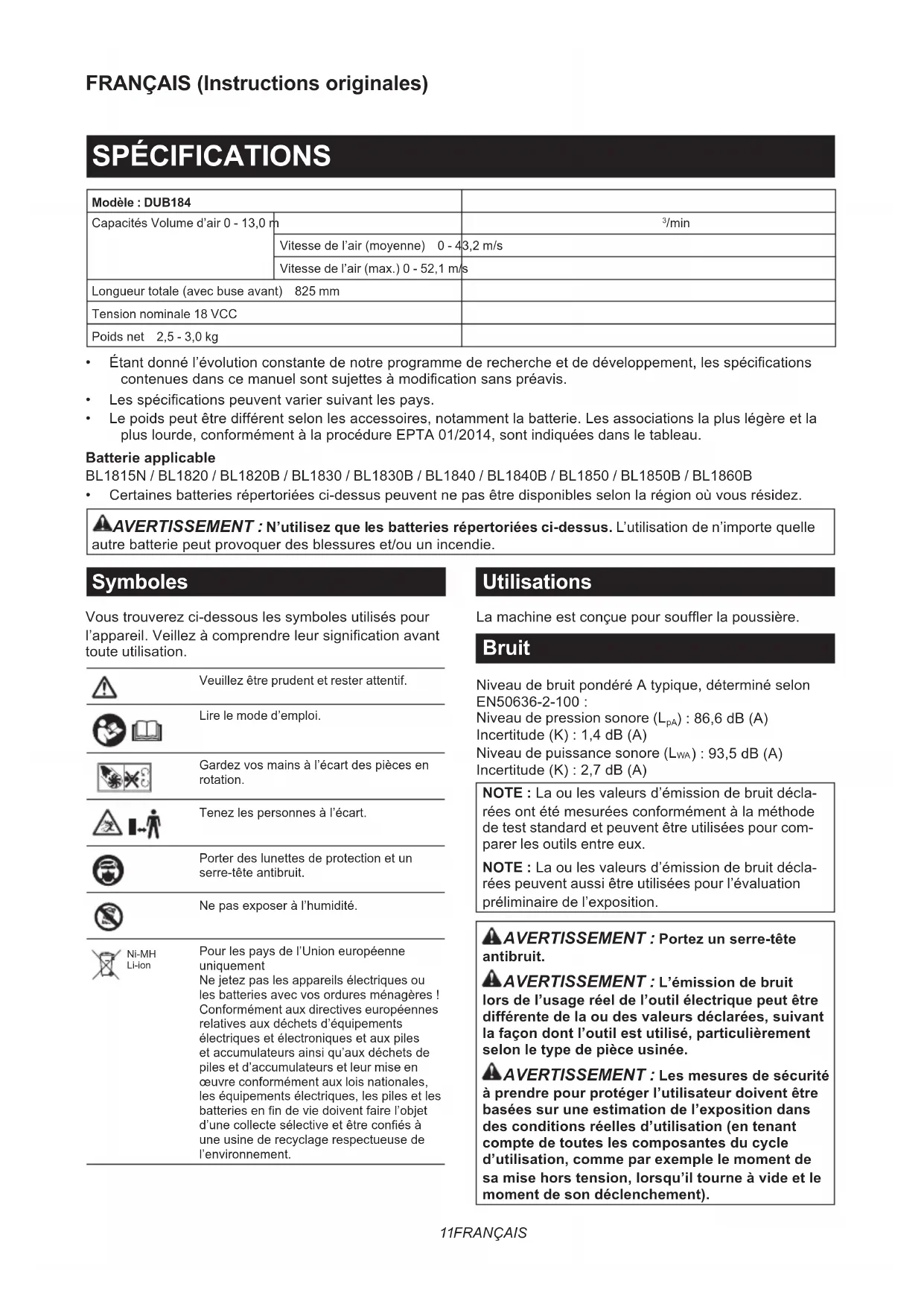 DUB184RF - Souffleur de feuilles MAKITA - Notice d'utilisation et mode d'emploi gratuit