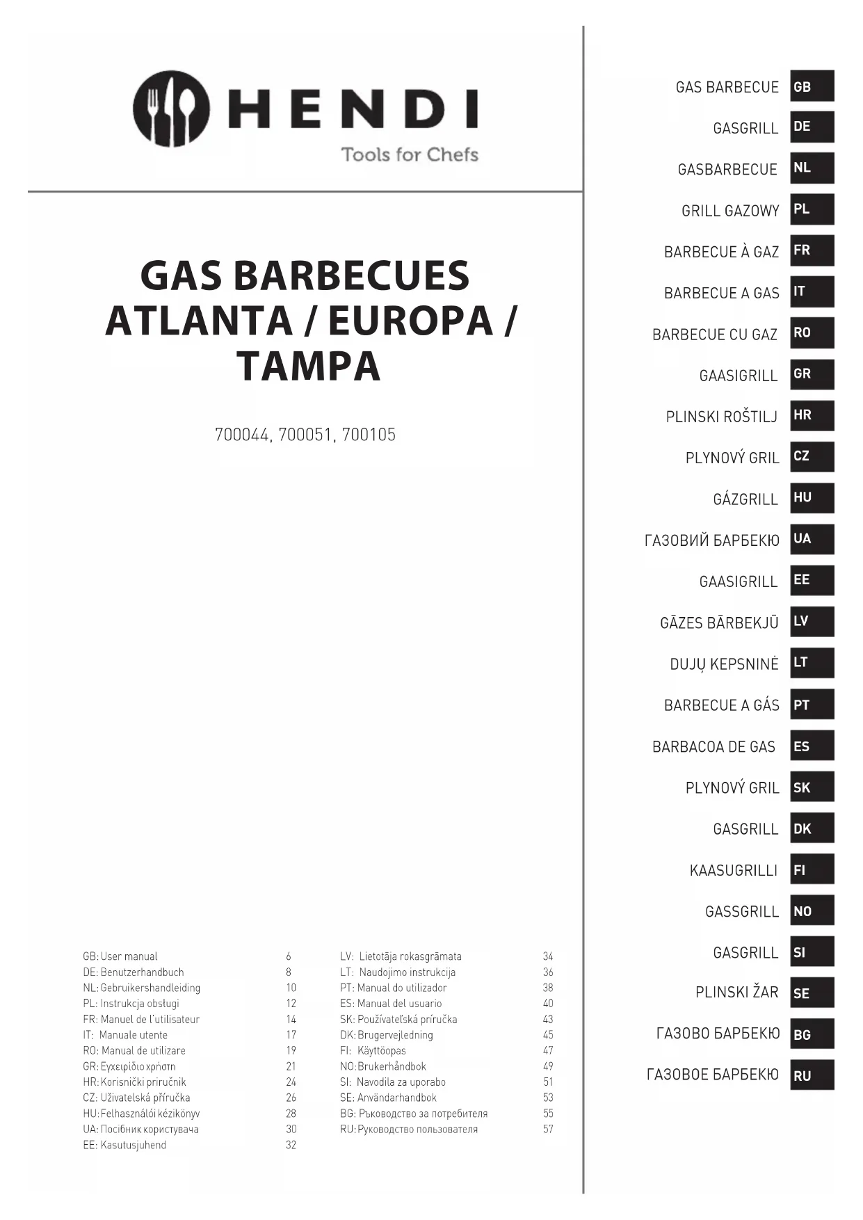 Téléchargez la notice de votre Barbecue au format PDF gratuitement ! Retrouvez votre notice 700044 - Hendi et reprennez votre appareil électronique en main. Sur cette page sont publiés tous les documents nécessaires à l'utilisation de votre appareil 700044 de la marque Hendi.