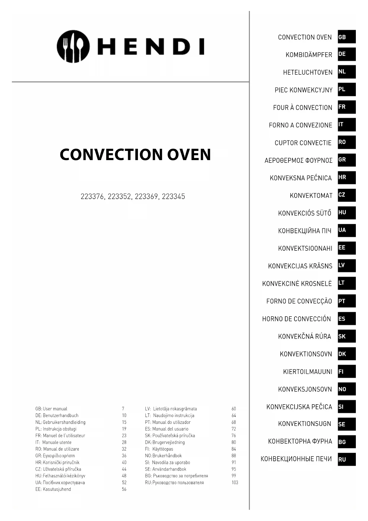 Retrouvez gratuitement la notice de l'appareil 223352 Hendi au format PDF.