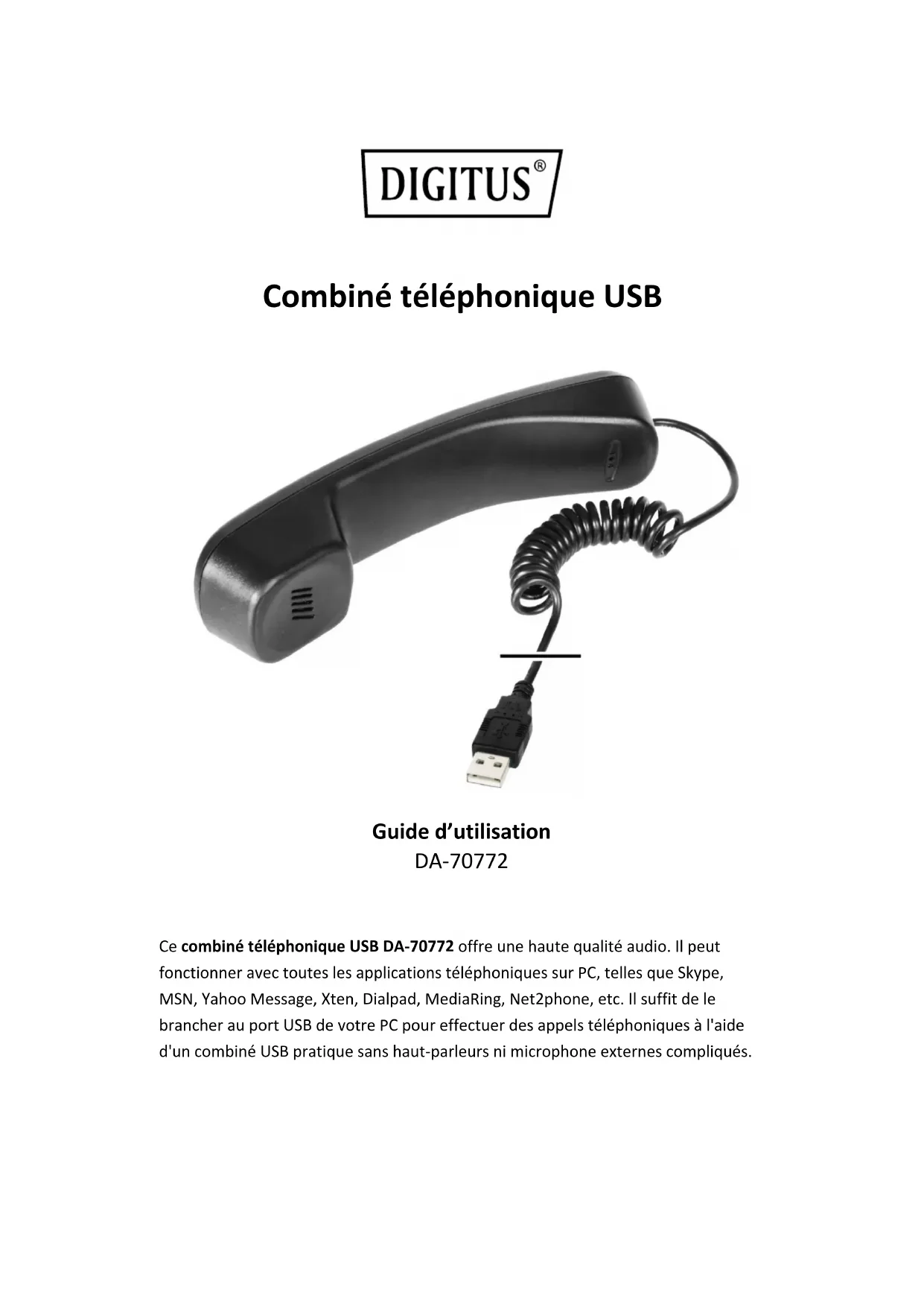 Combiné téléphonique USB Guide d’utilisation DA-70772