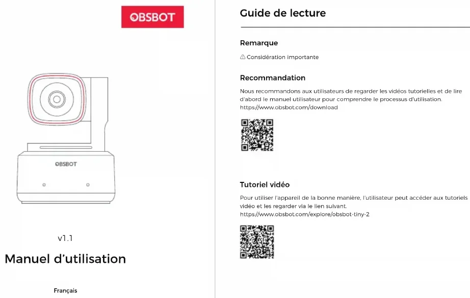 Retrouvez gratuitement la notice de l'appareil Tiny 2 OBSBOT au format PDF.
