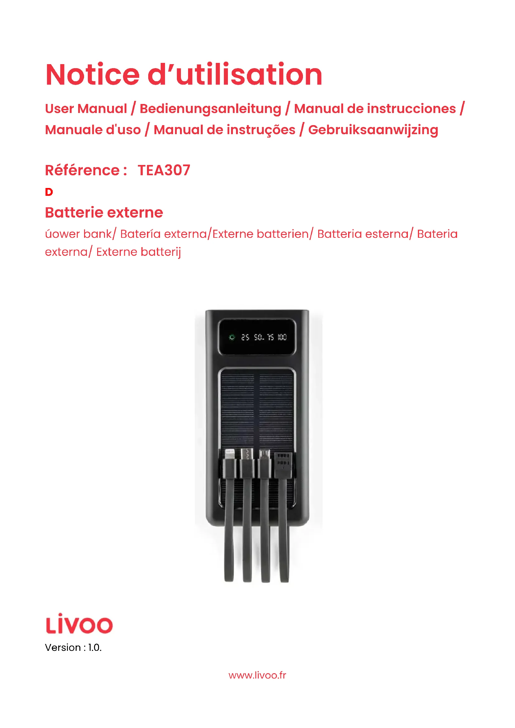 TEA307 - Batterie portable LIVOO - Notice d'utilisation et mode d'emploi gratuit