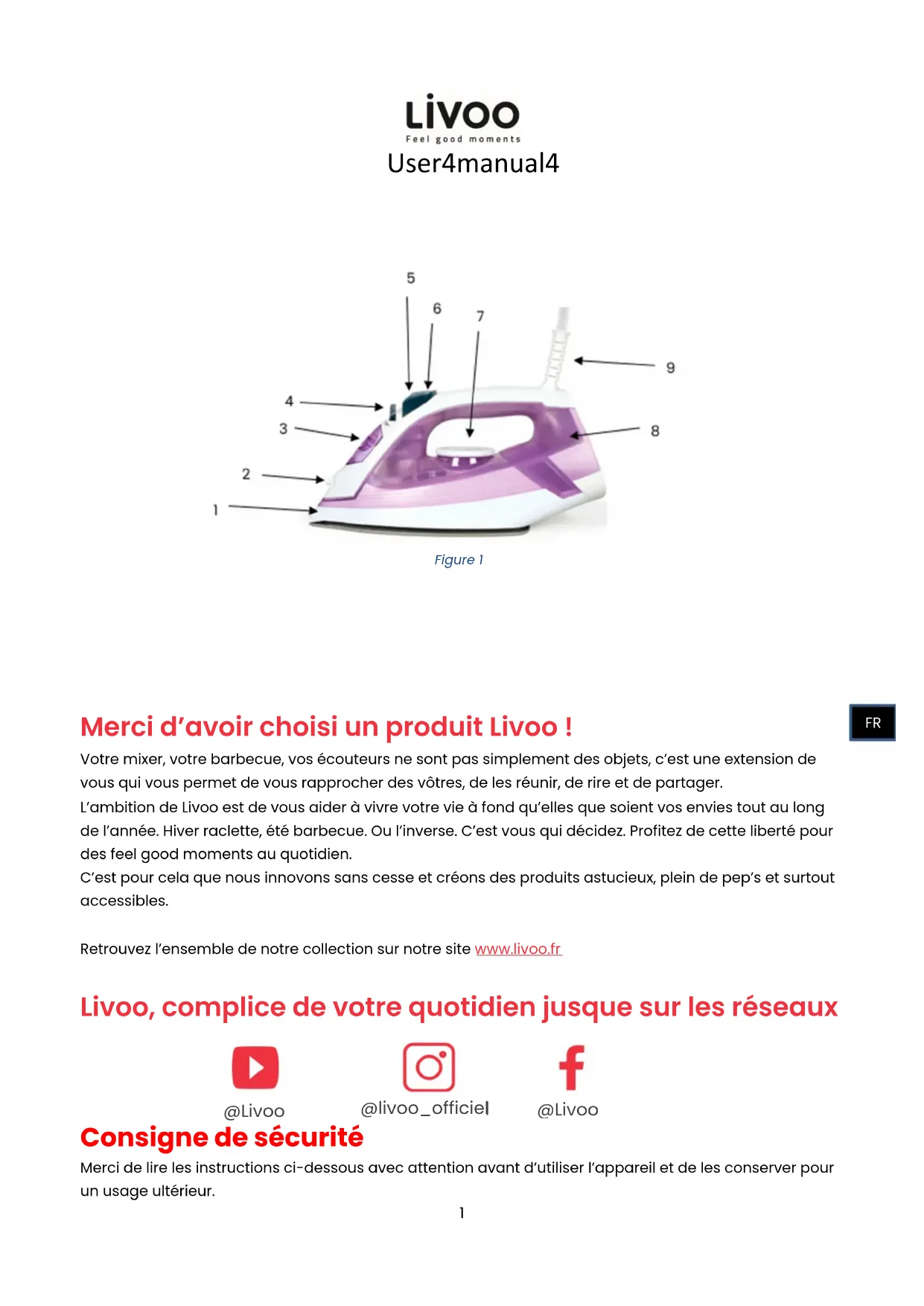 Consigne de sécurité Merci de lire les instructions ci-dessous avec attention avant d’utiliser l’appareil et de les conserver pour un usage ultérieur. @livoo_officiel