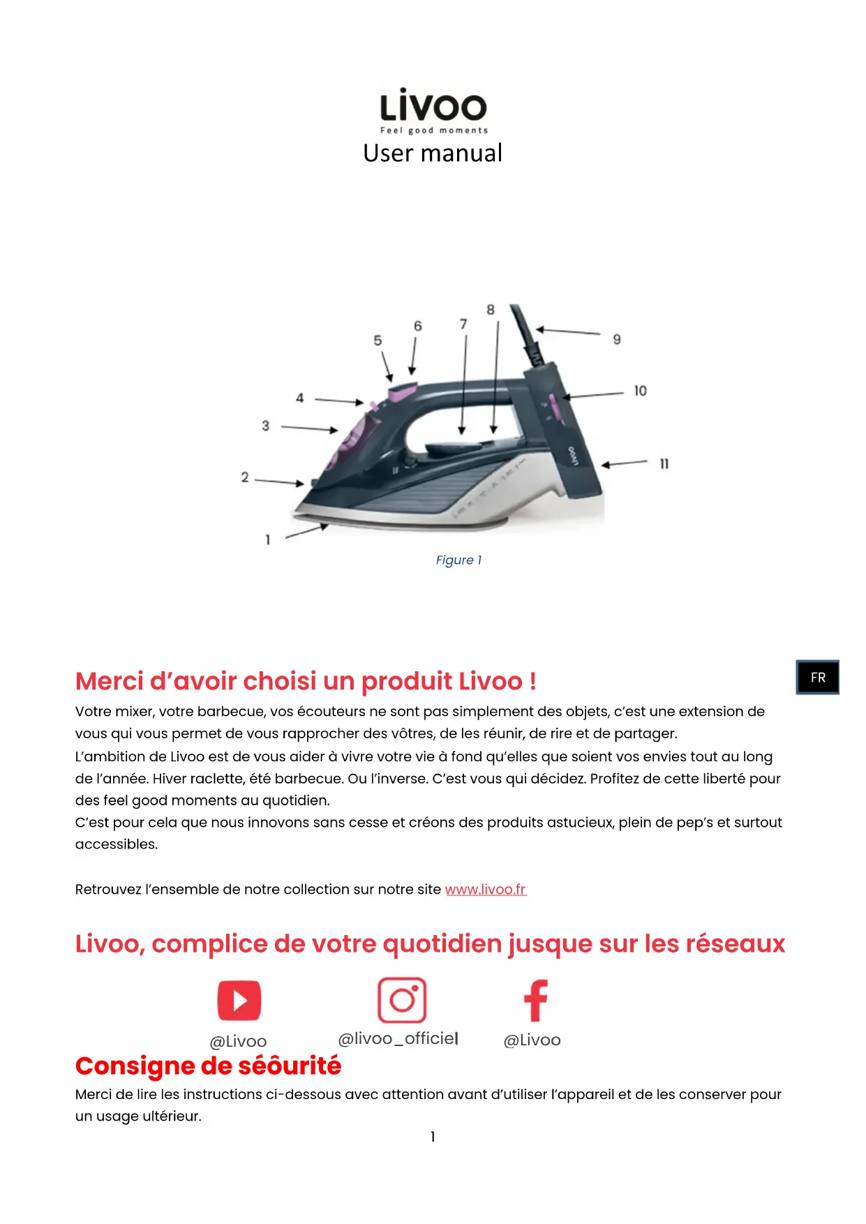Consigne de sécurité Merci de lire les instructions ci-dessous avec attention avant d’utiliser l’appareil et de les conserver pour un usage ultérieur. @livoo_officiel